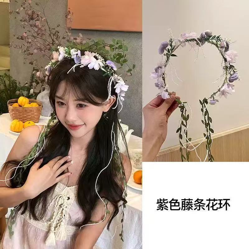 儿童发箍欧式仙气金色叶子头箍花朵花环珍珠发带新娘新皇冠蝴蝶结