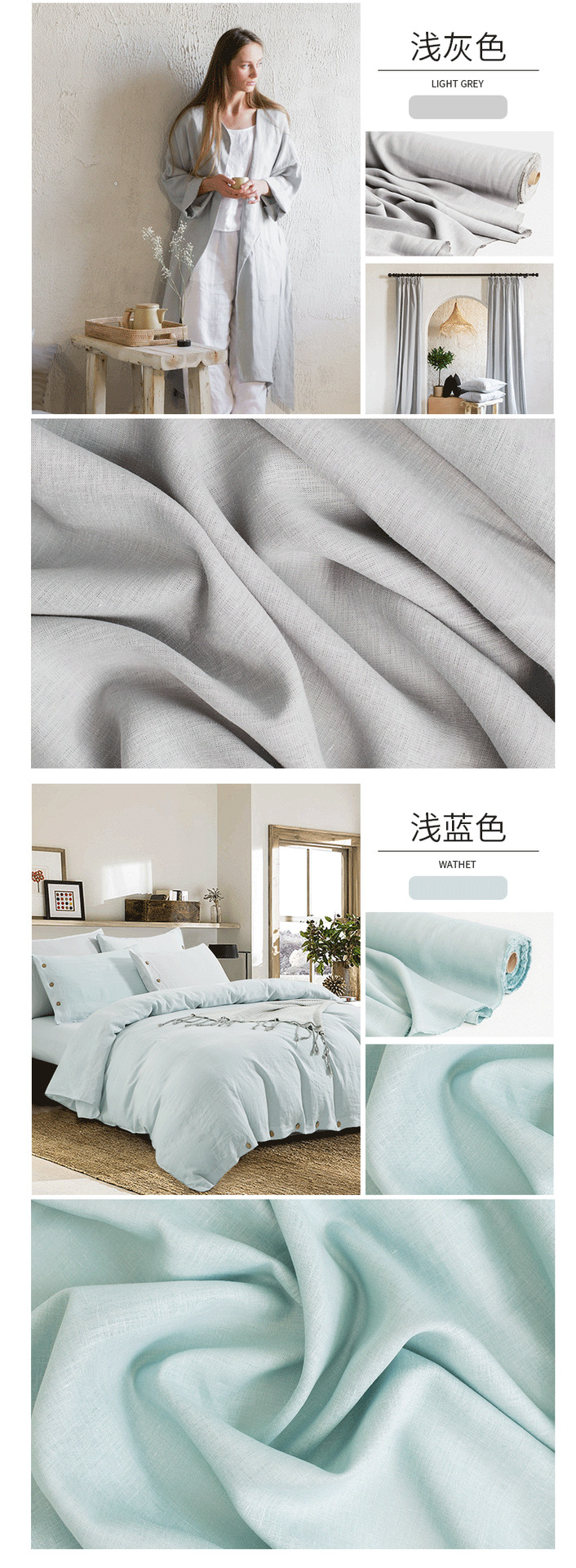 ins风大麻汉麻面料14支纯色文艺复古床上用品窗帘服装布料批发