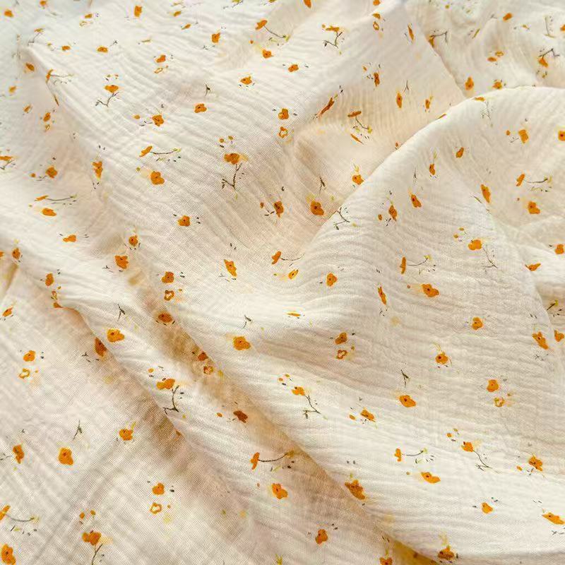 纯棉40支双层绉布宝宝纱布褶皱面料邹布料日韩系全棉7A级面料1