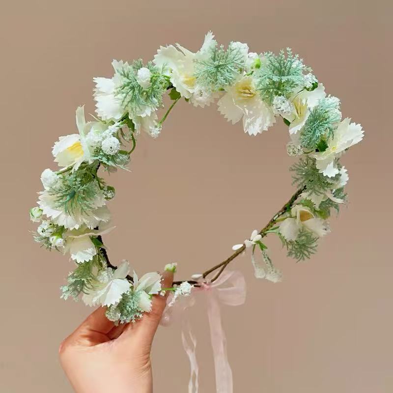 花环发箍头箍花童礼服婚礼头花女孩发饰女童头饰2025手工蝴蝶结