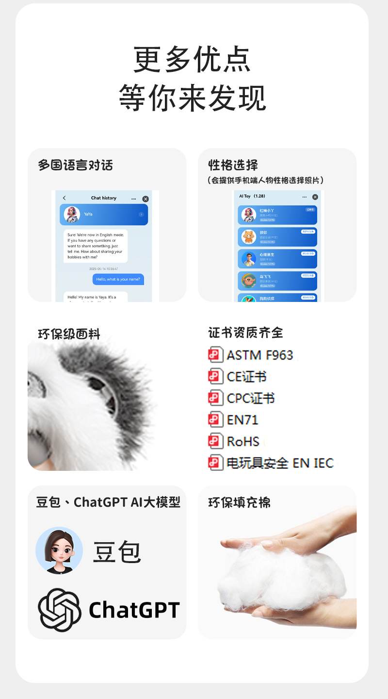 绒糯糯ai玩具跨境智能陪伴互动安抚毛绒玩偶百搭背包包挂件