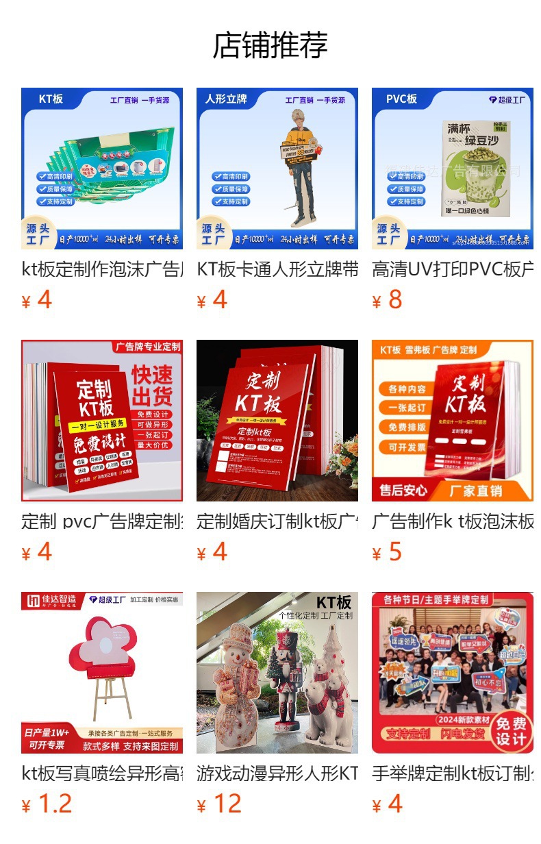 加工白色kt板定制pvc雪弗板喷绘写真广告展示牌展示架异形手举牌