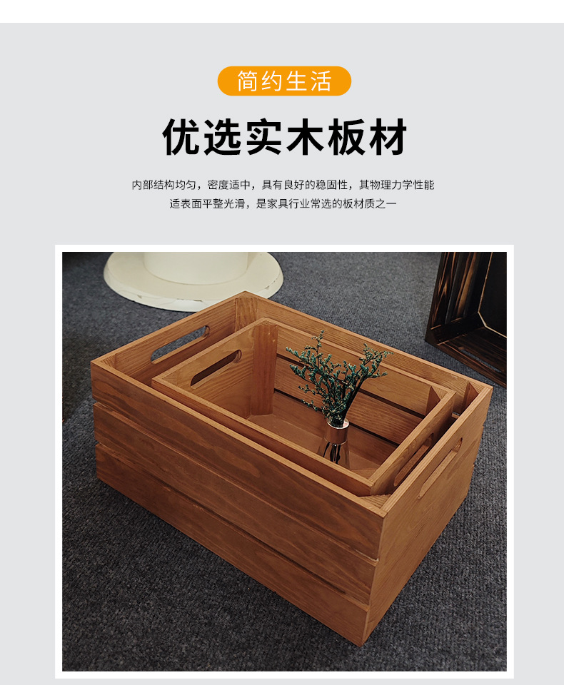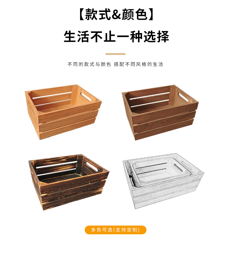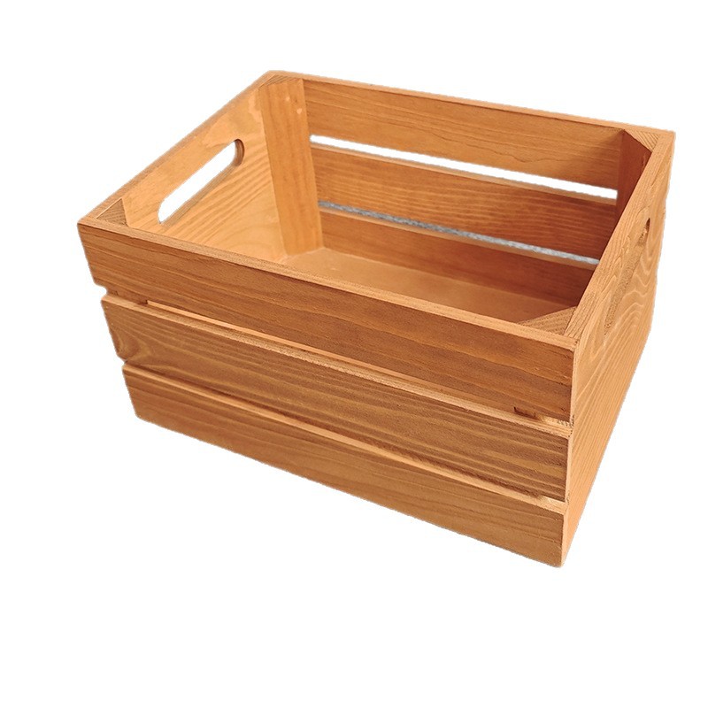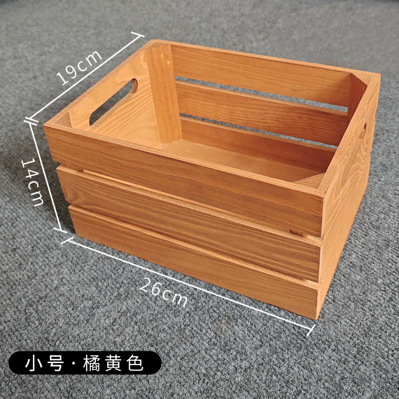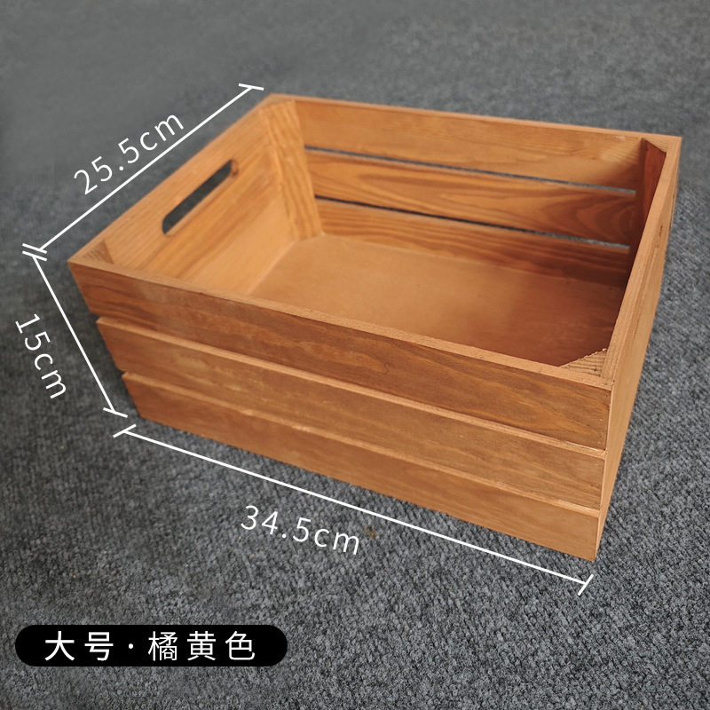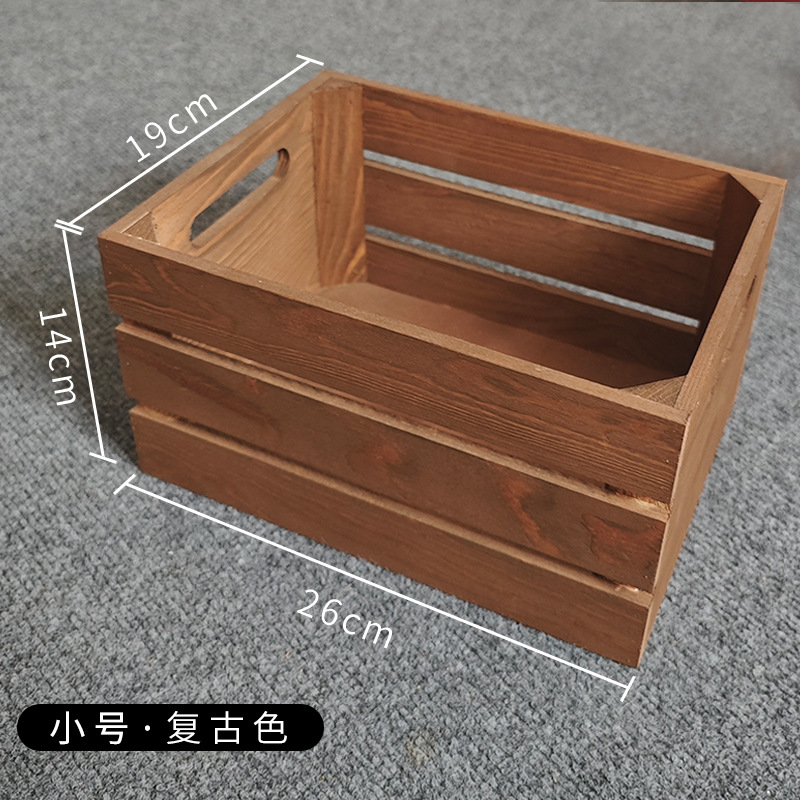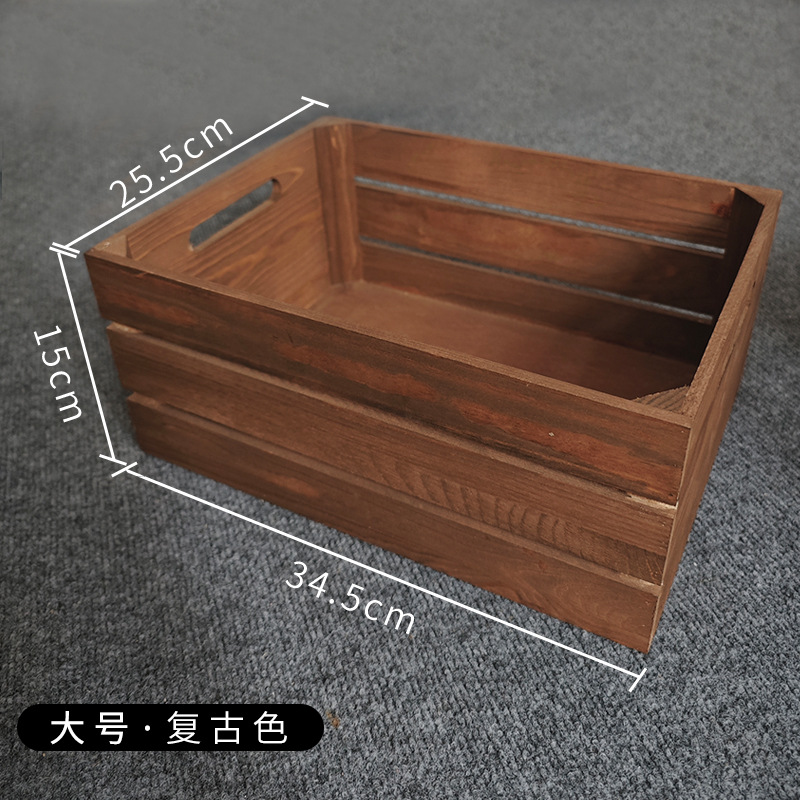 复古木筐木条框桌面收纳筐杂物书籍收纳盒超市水果蔬菜展示收纳箱