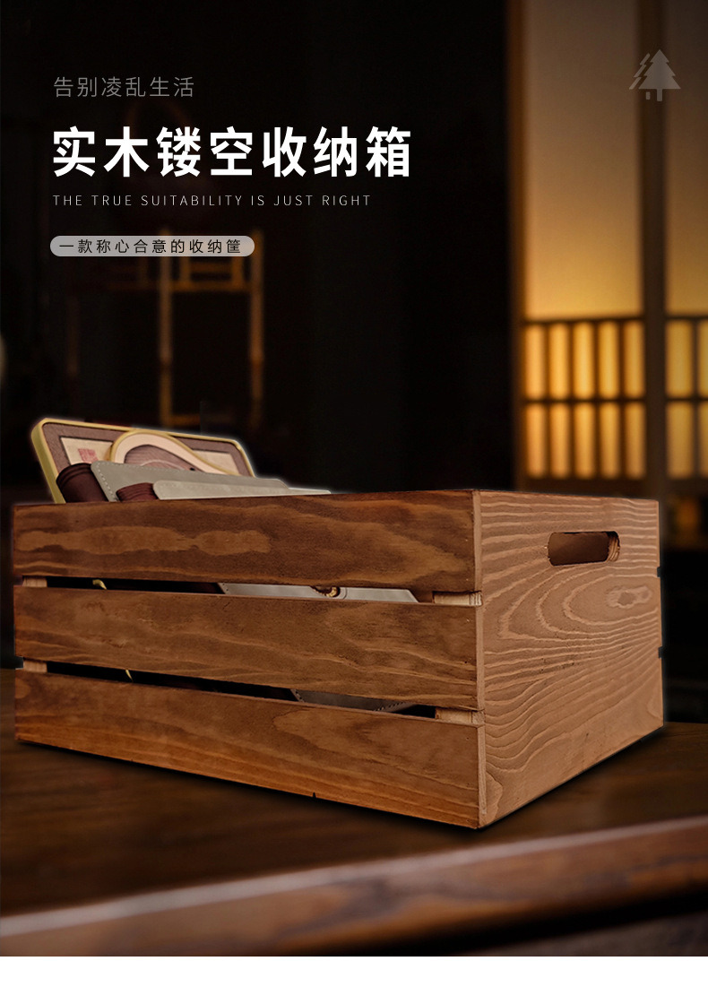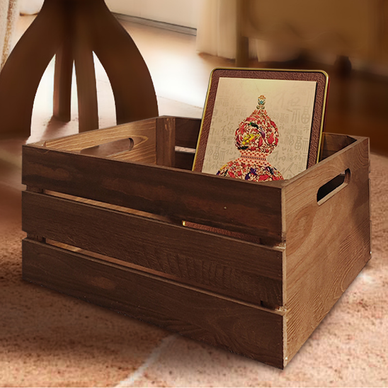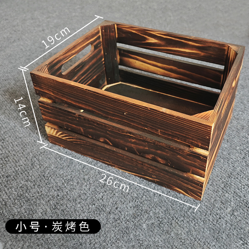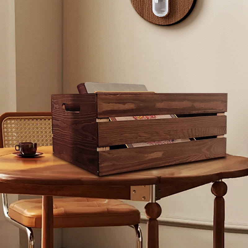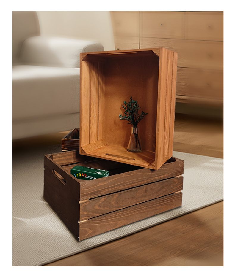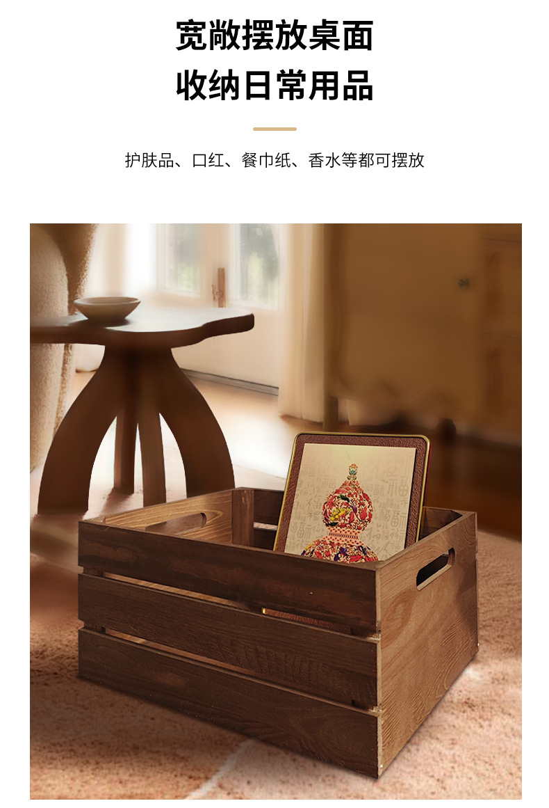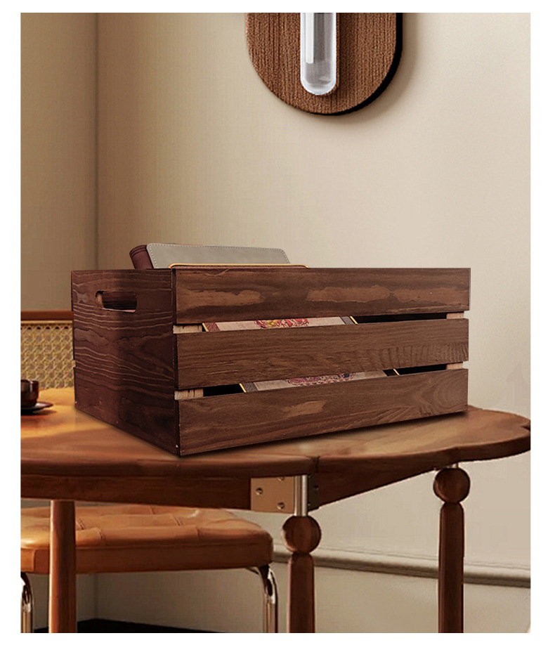 复古木筐木条框桌面收纳筐杂物书籍收纳盒超市水果蔬菜展示收纳箱