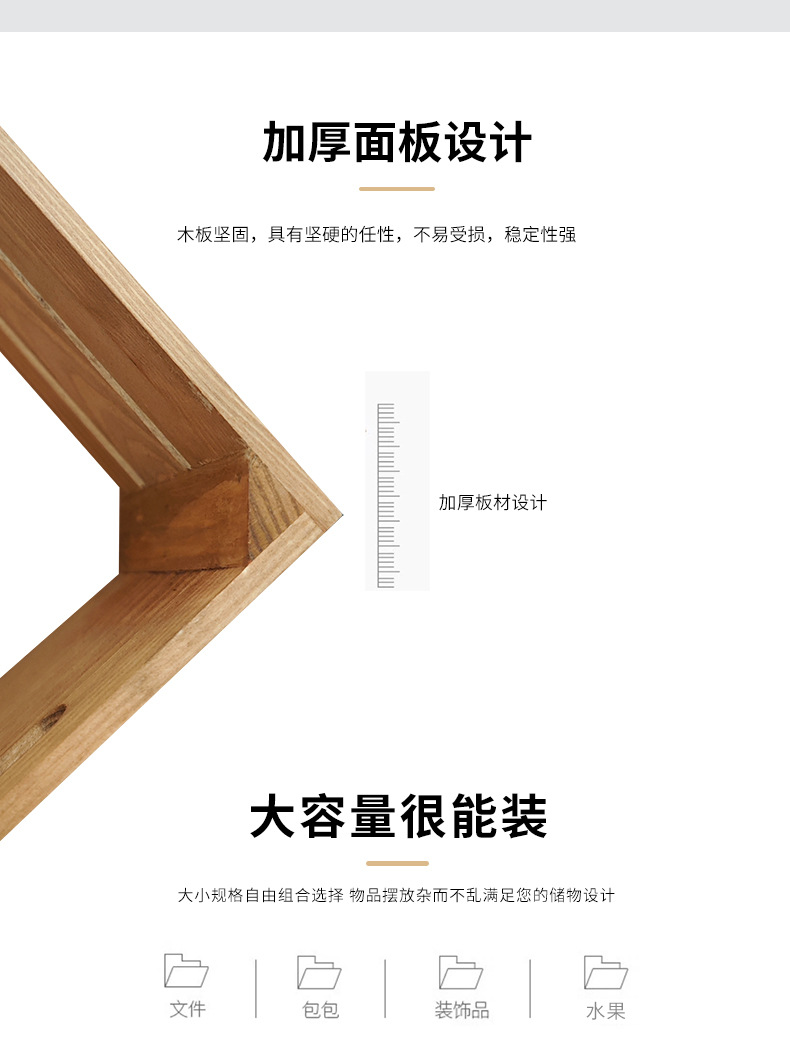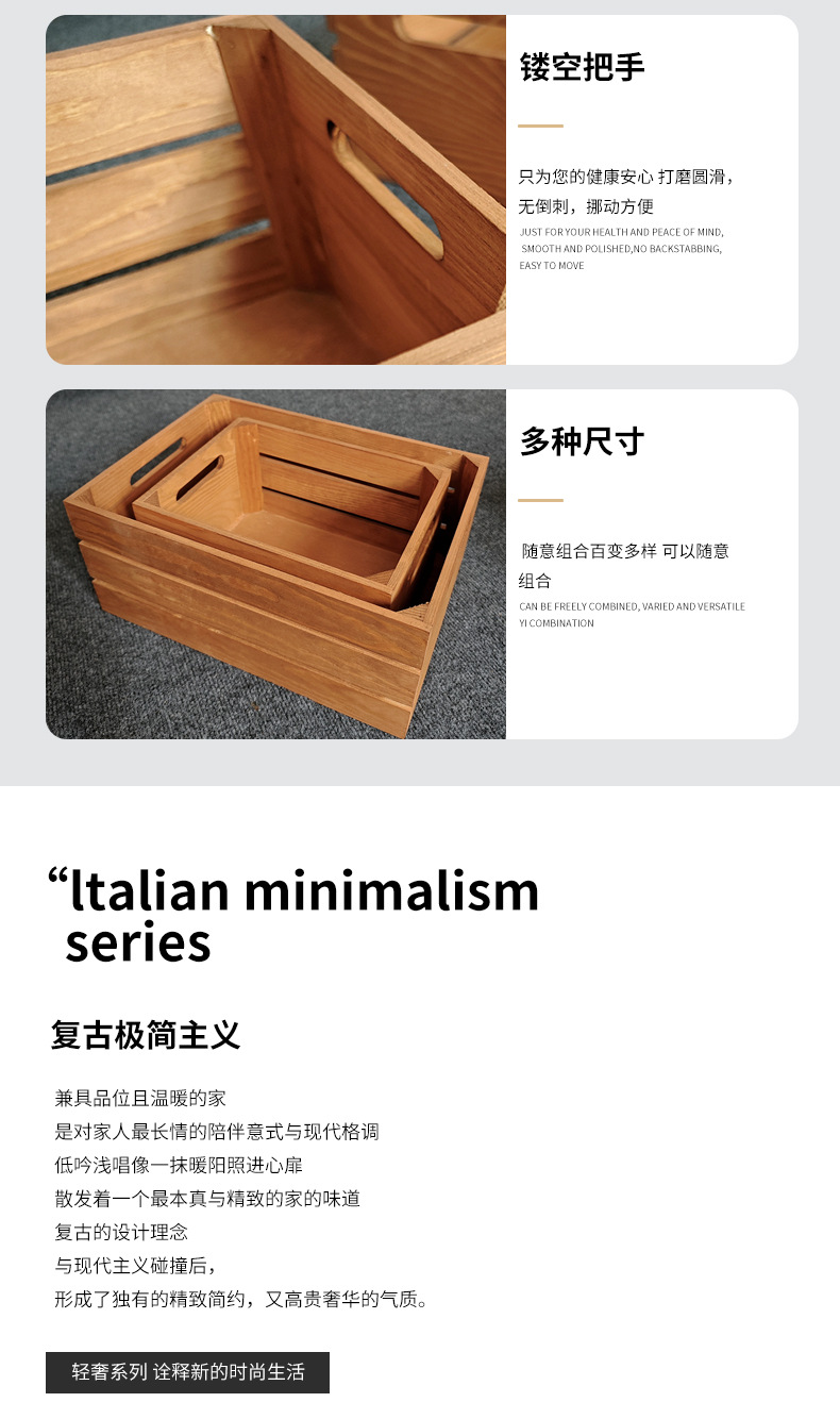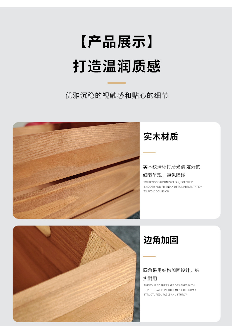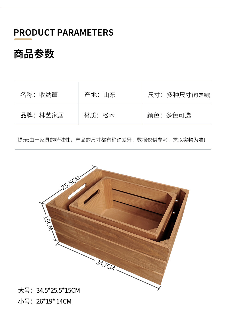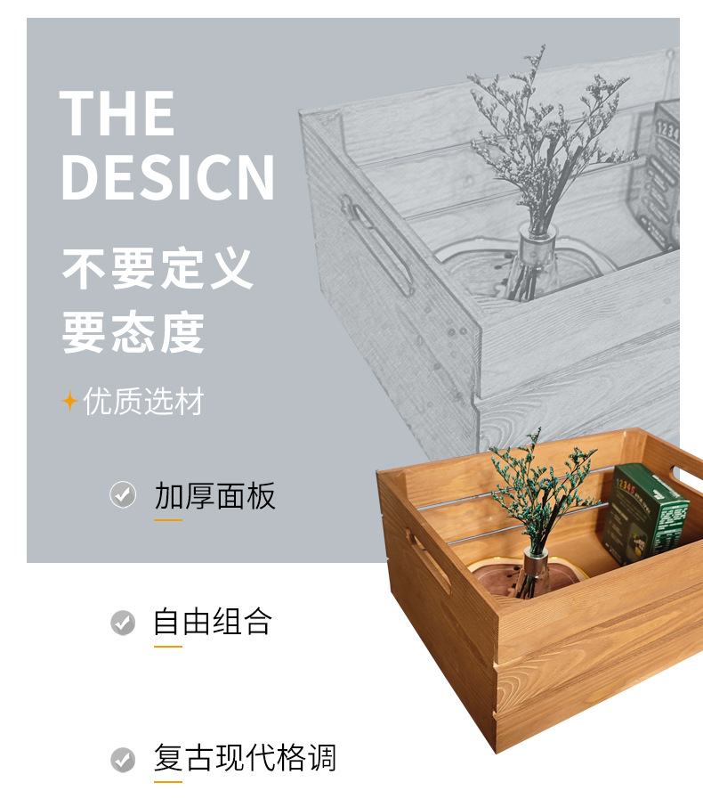 复古木筐木条框桌面收纳筐杂物书籍收纳盒超市水果蔬菜展示收纳箱