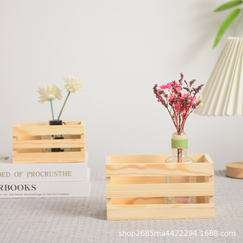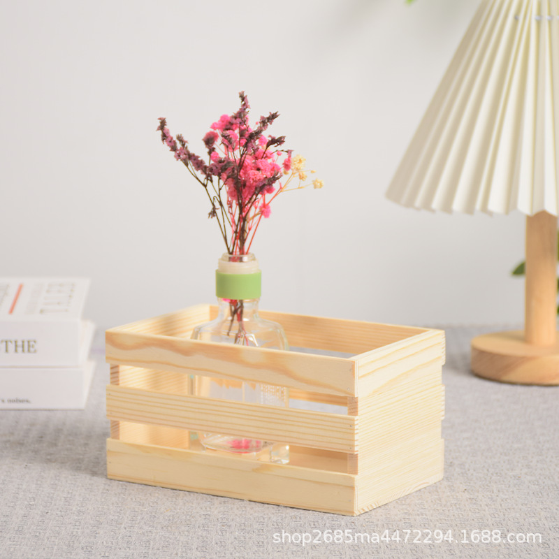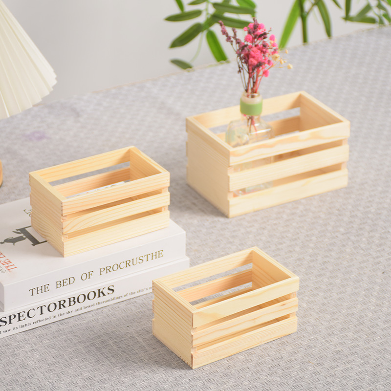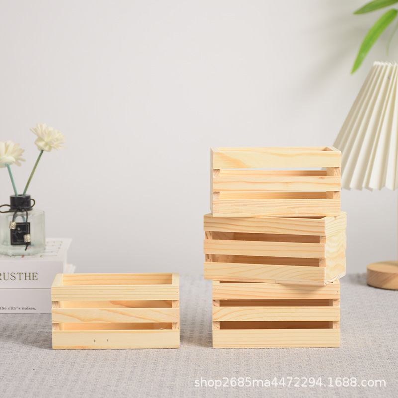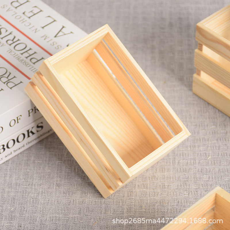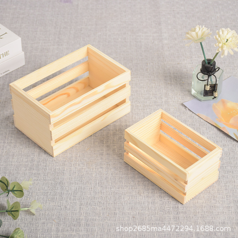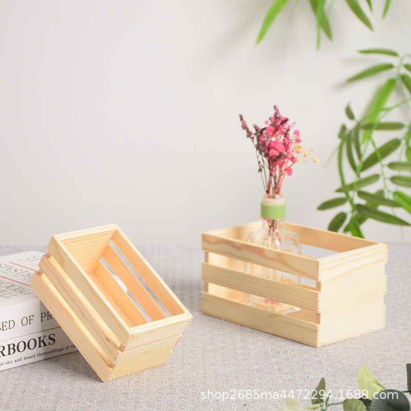 定制木筐实木杂物收纳筐桌面书籍整理超市水果蔬菜筐多尺寸木条筐