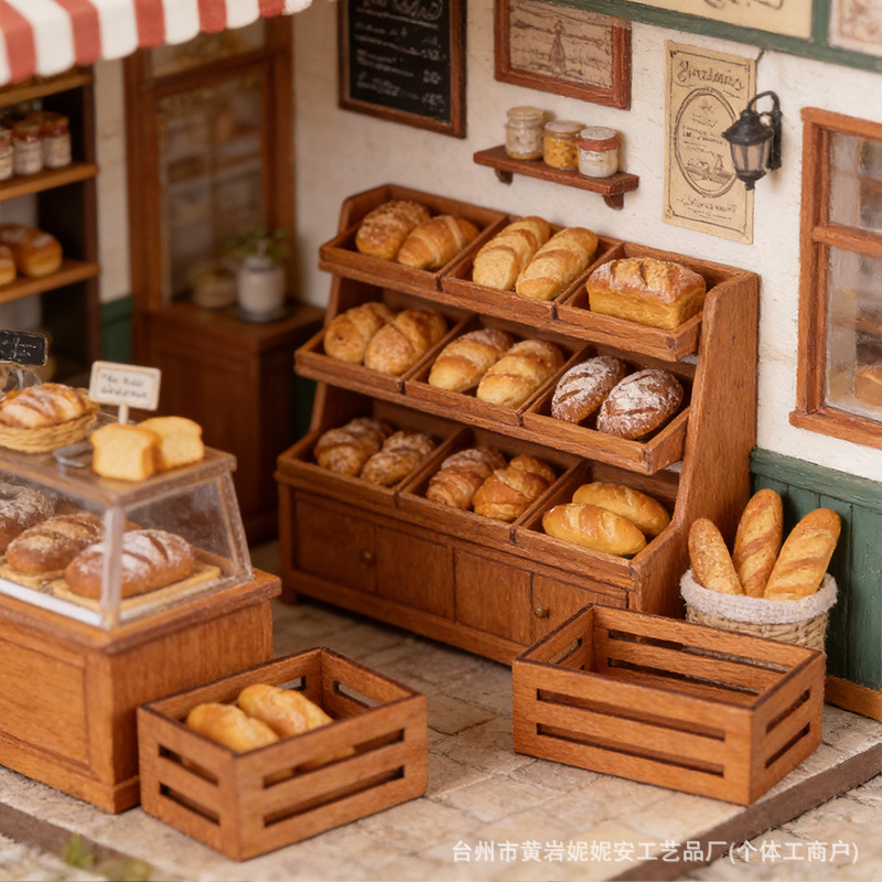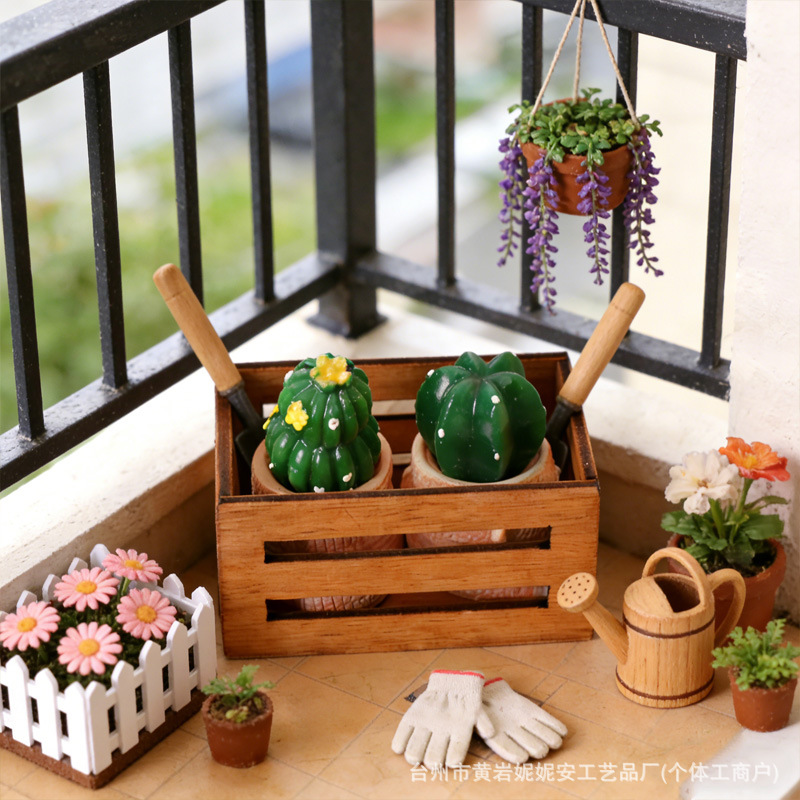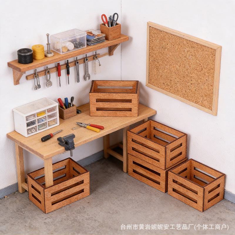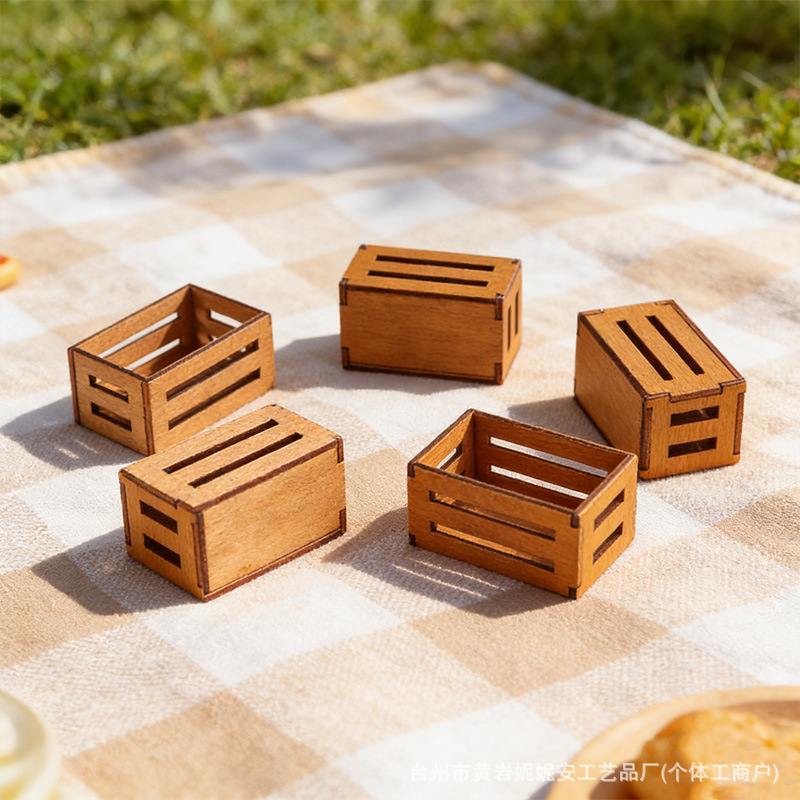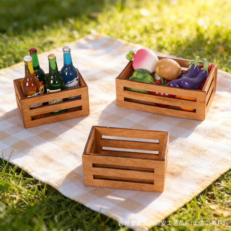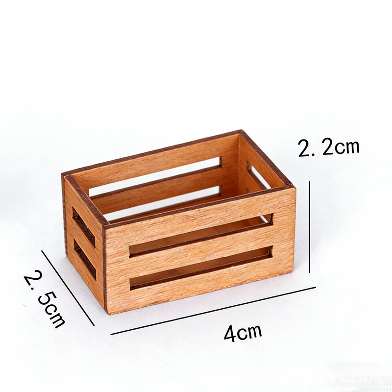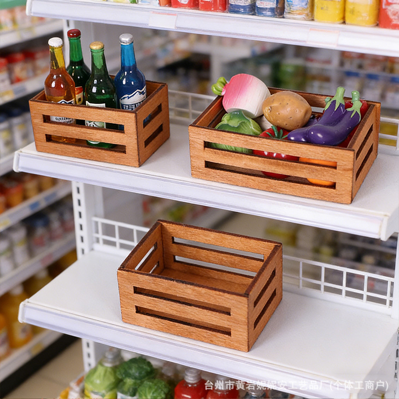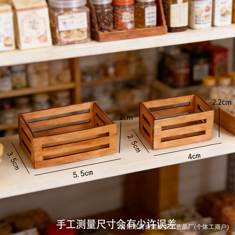 Dollhouse娃娃屋微缩食玩木质框收纳蓝迷你仿真收纳筐过家家模型