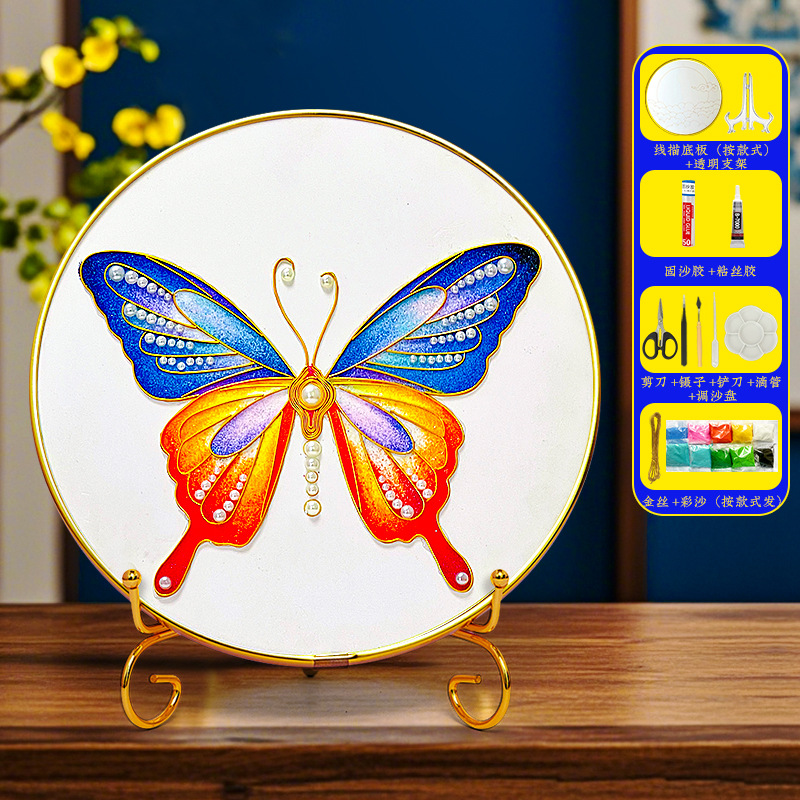 景泰蓝diy掐丝珐琅材料包非遗手工掐丝珐琅画 荷花中国风装饰摆件