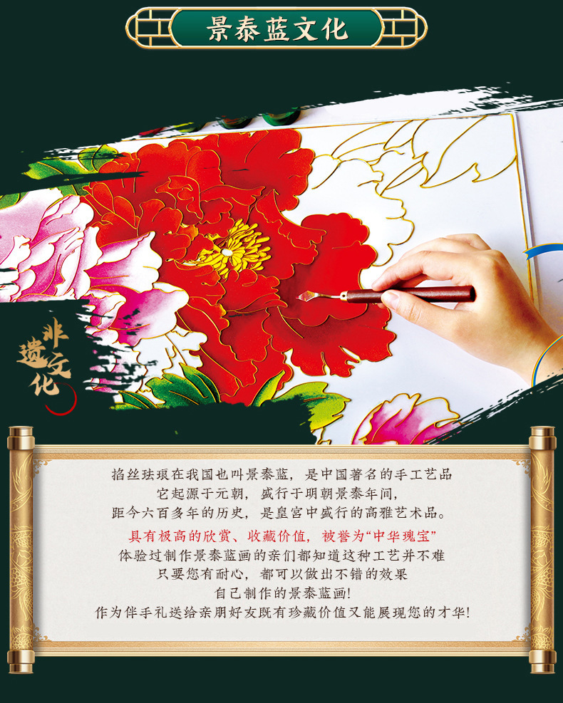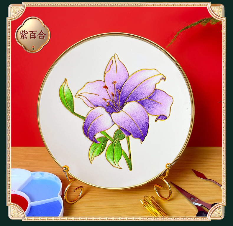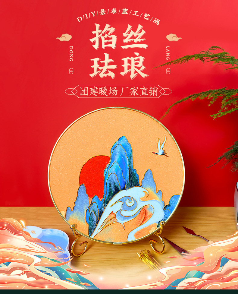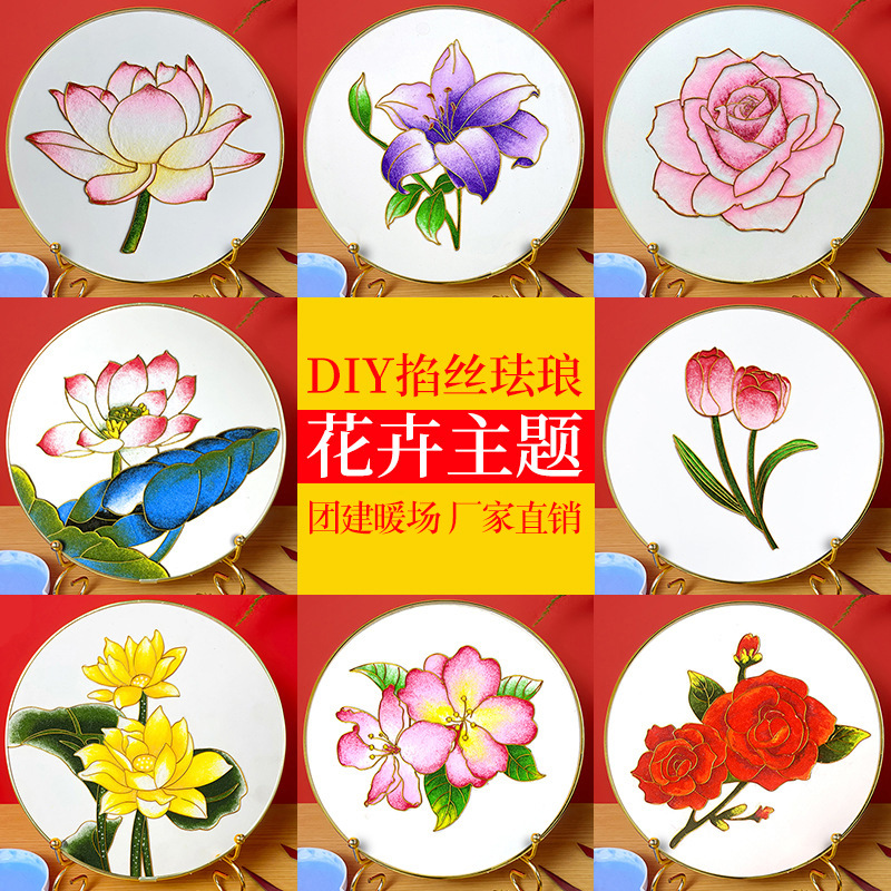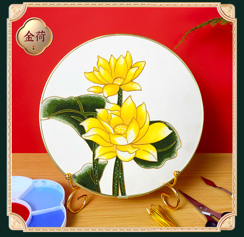 景泰蓝掐丝珐琅画diy手工材料包 荷花主题中秋企业团建亲子活动