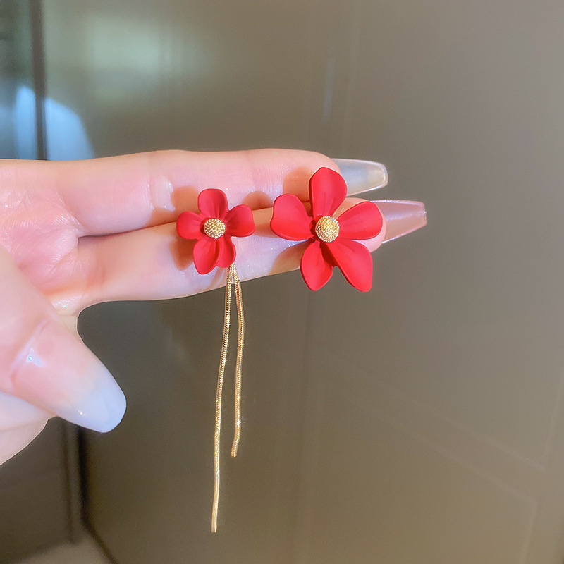 银针超仙粉色花朵爱心流苏耳环时尚百搭气质耳钉轻奢高级感耳饰女