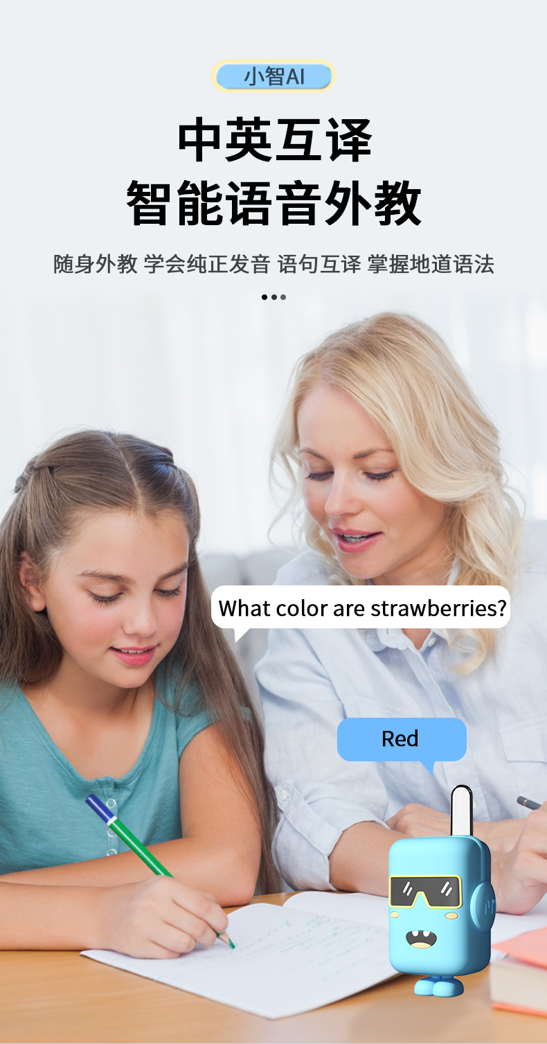 AI智能对讲机守护孩子陪伴成长智能对话科技萌宠中英互译提升能力