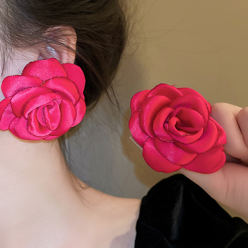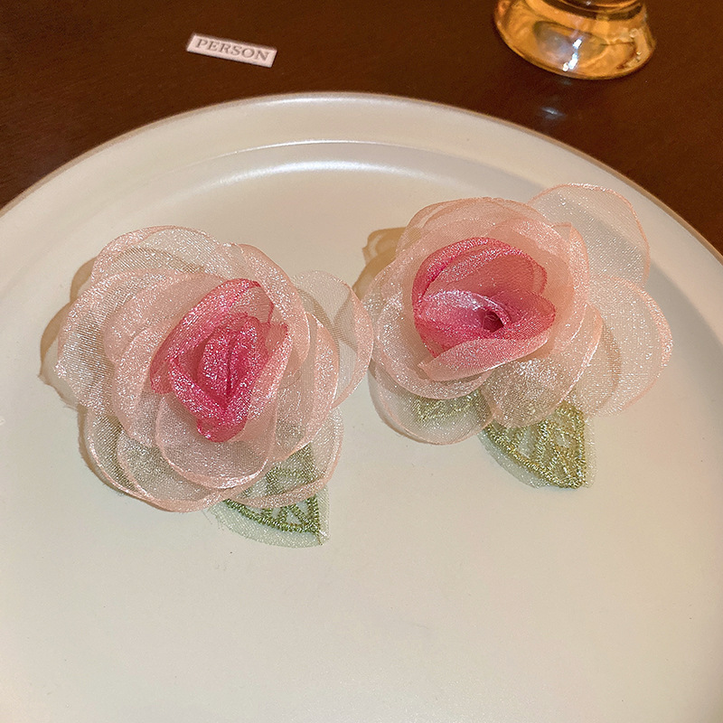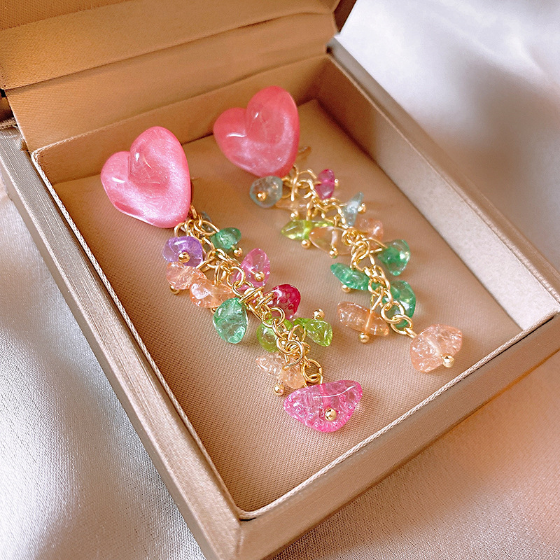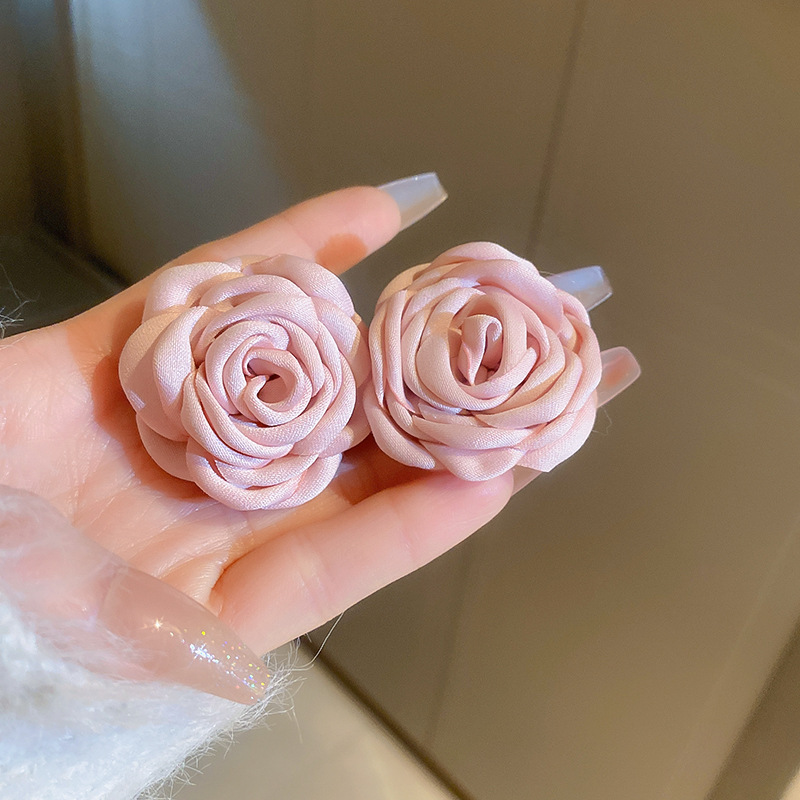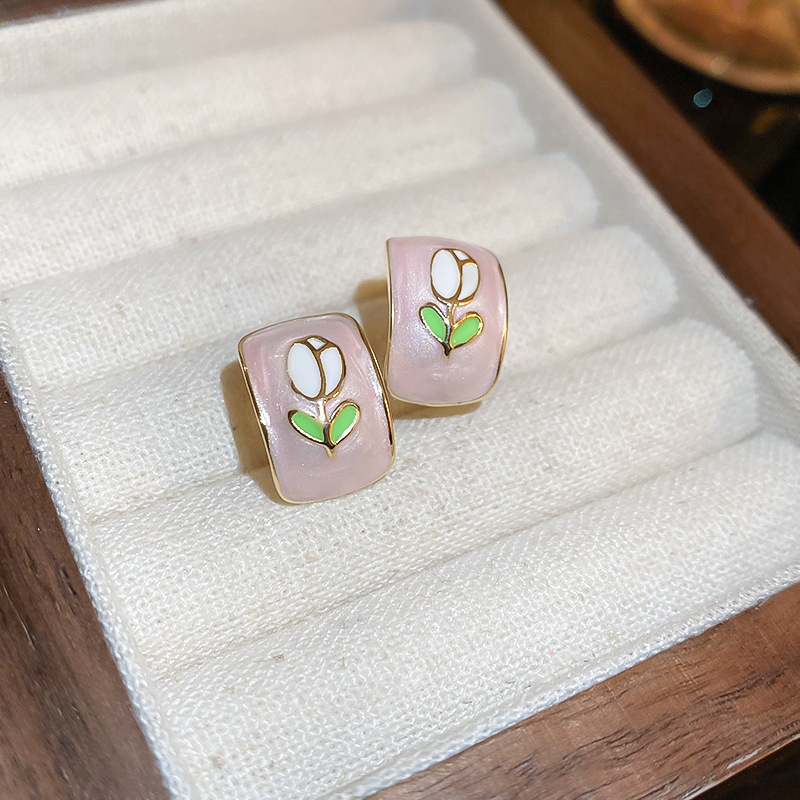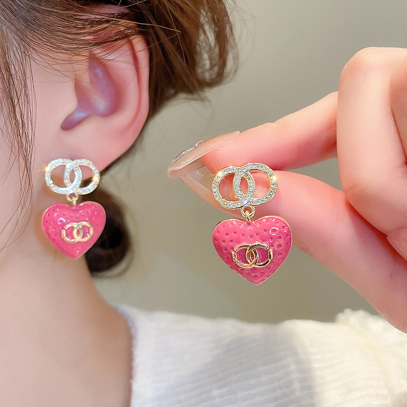 银针粉色系少女心褶皱爱心花朵猫眼石珍珠耳环时尚耳钉高级感耳饰