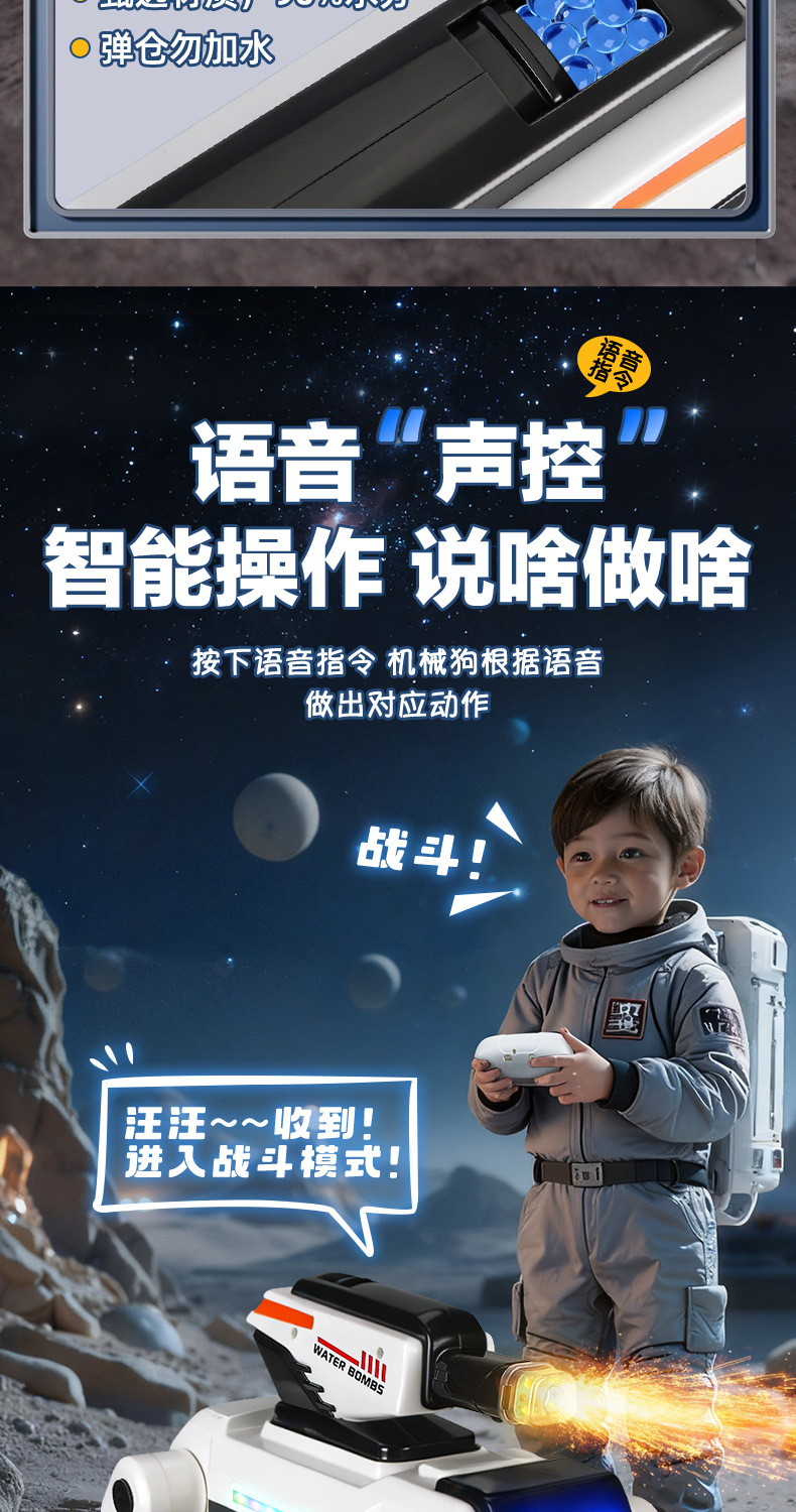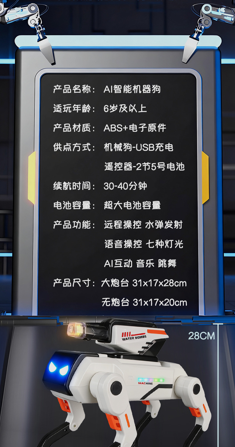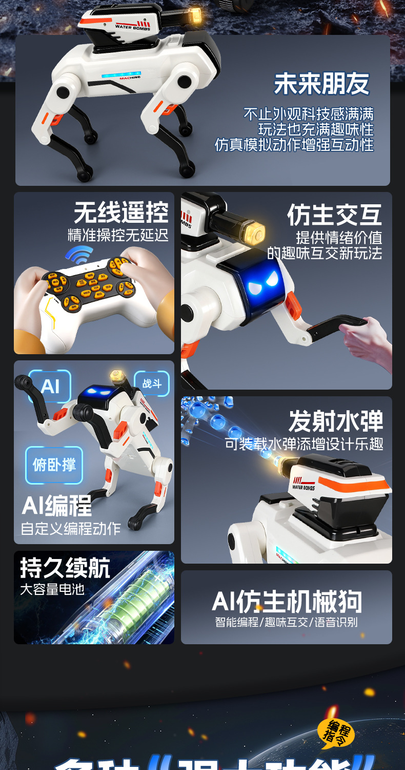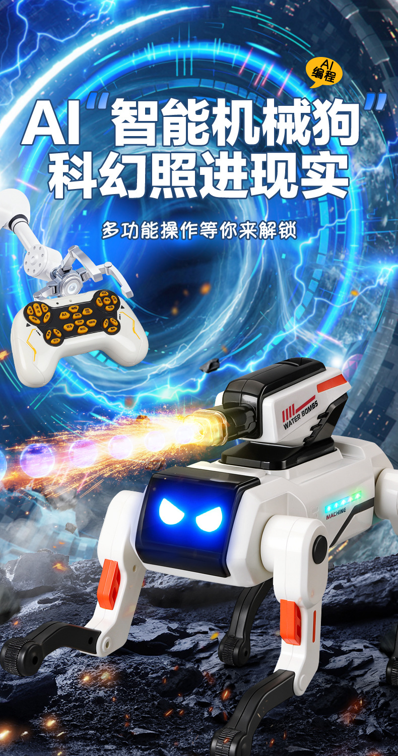 跨境新品AI智能机械狗语音互动编程打水弹仿生机械狗儿童遥控玩具