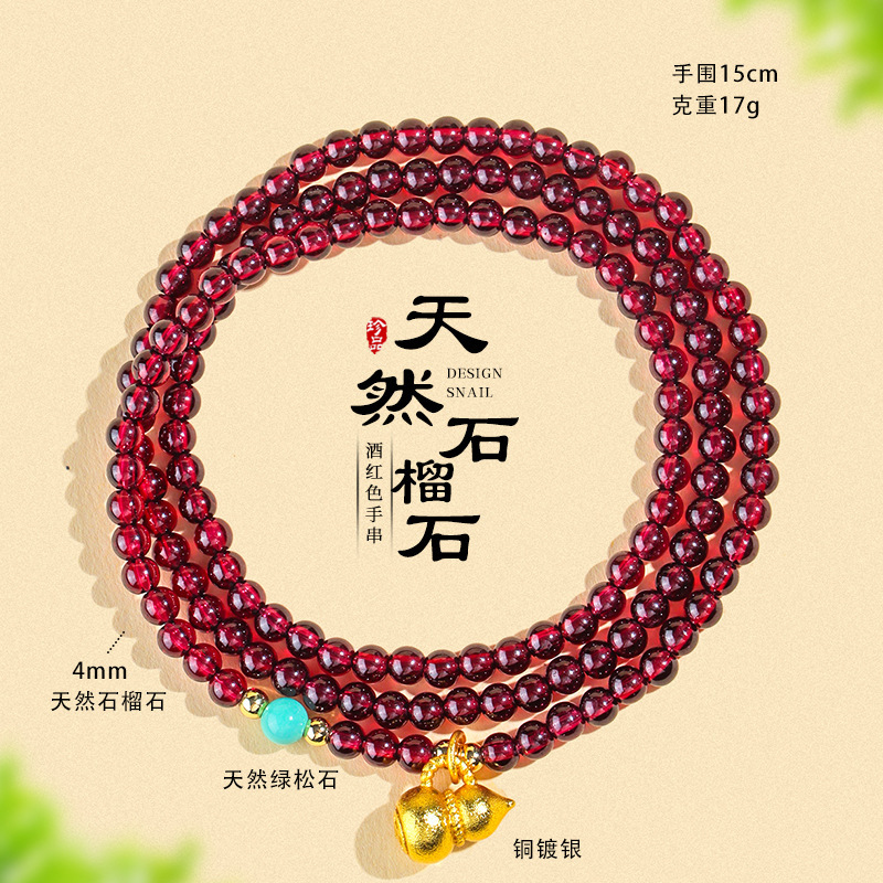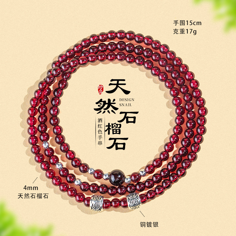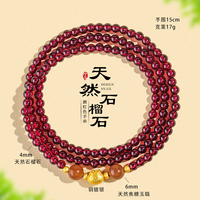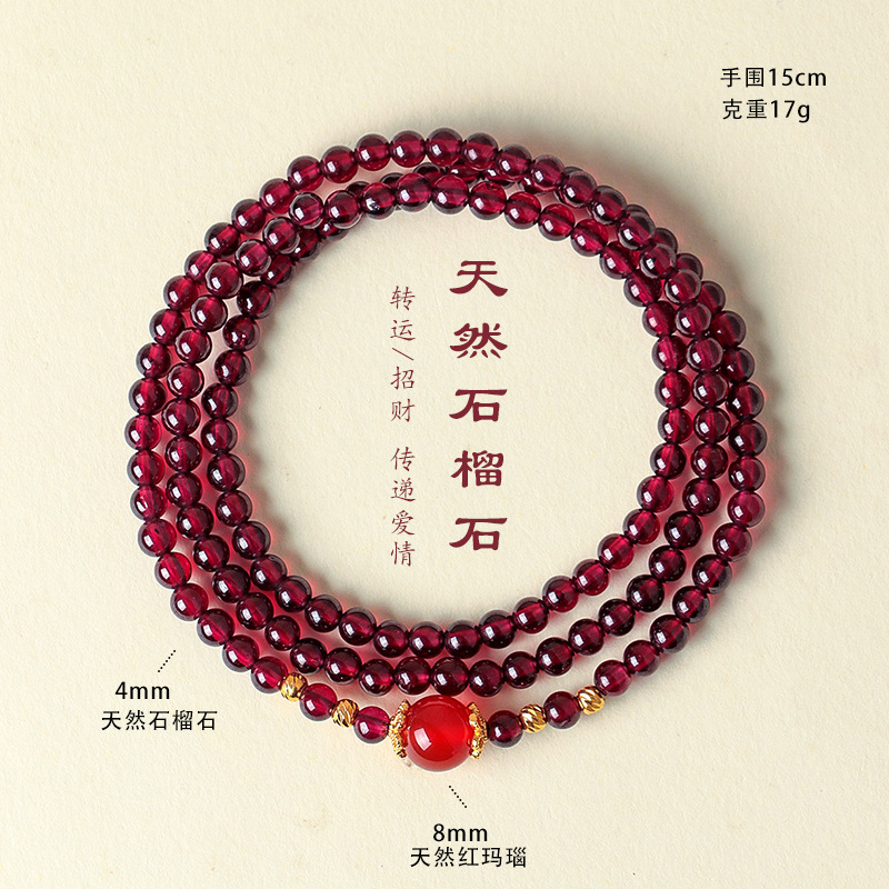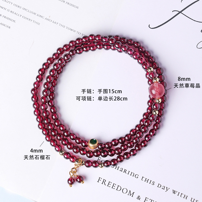 天然酒红真石榴石手链女草莓晶转珠手饰女多圈多层水晶手串批发