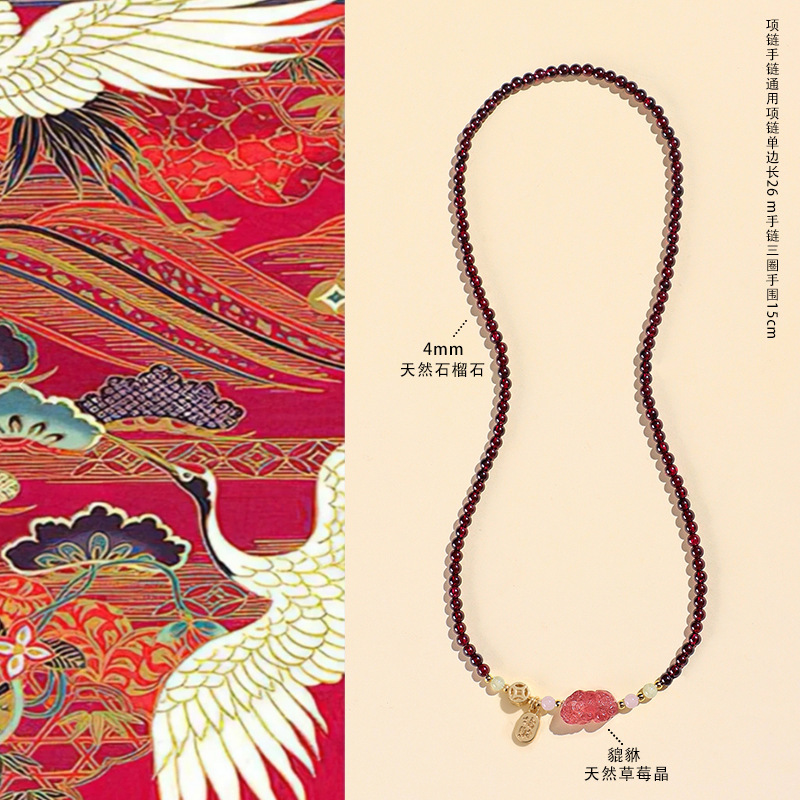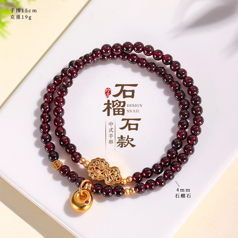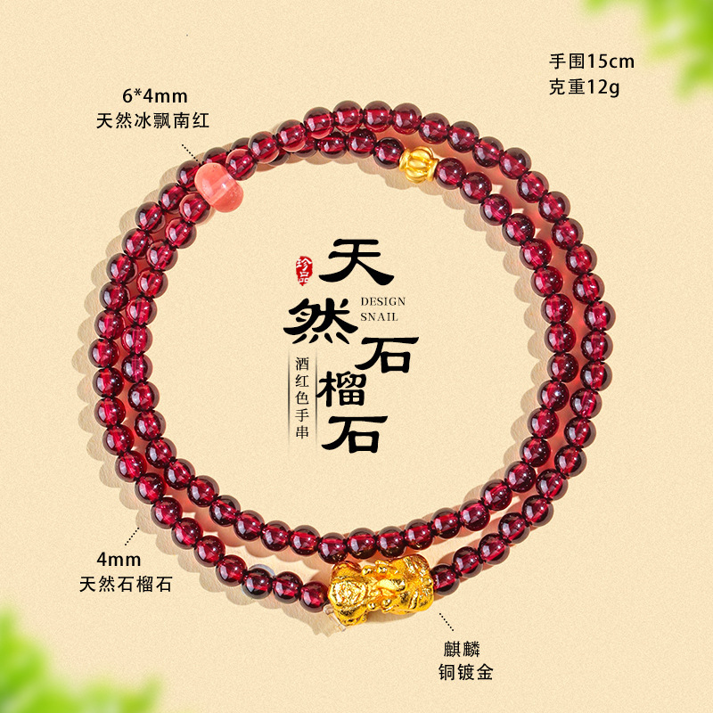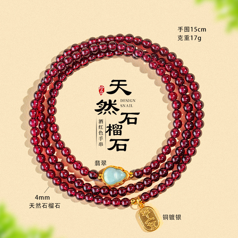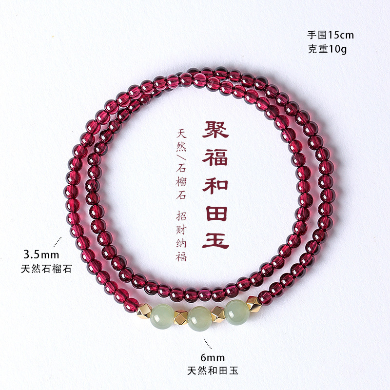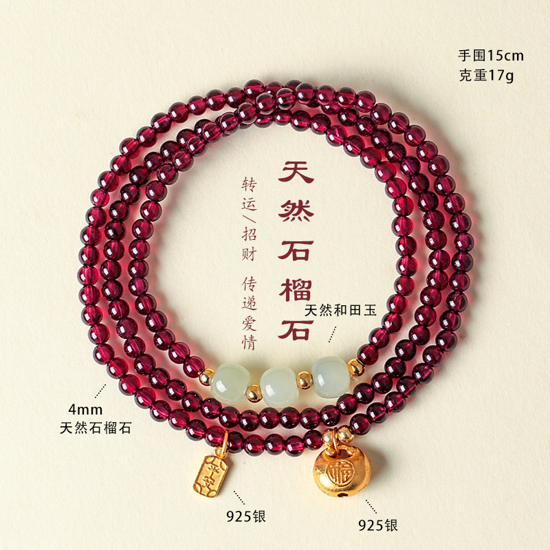 天然酒红真石榴石手链女草莓晶转珠手饰女多圈多层水晶手串批发