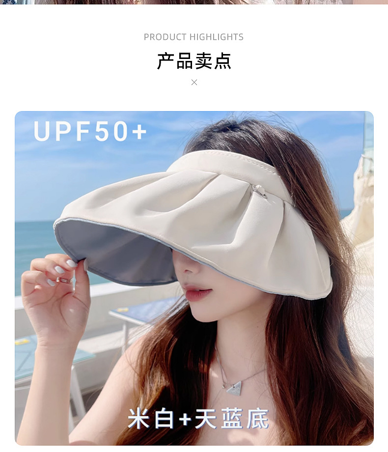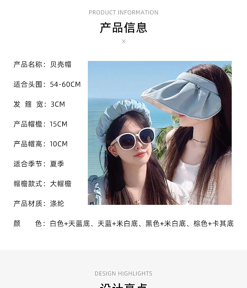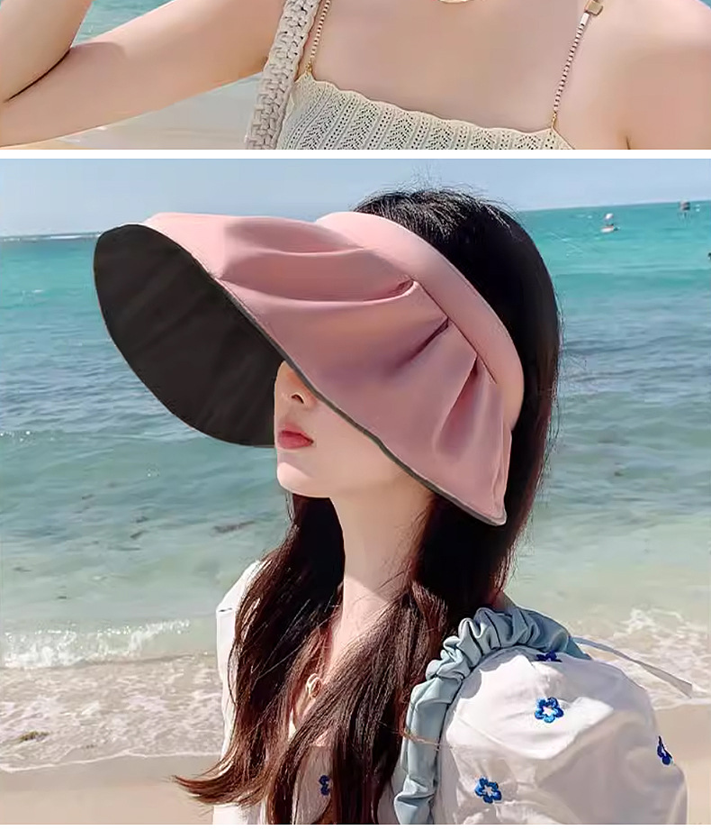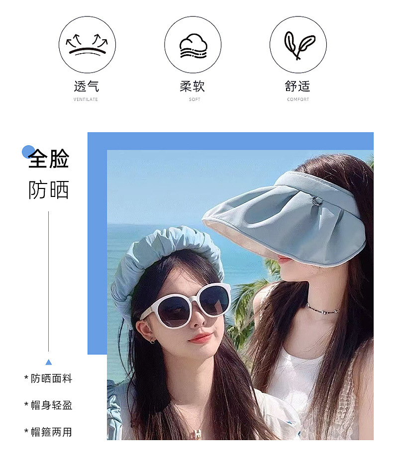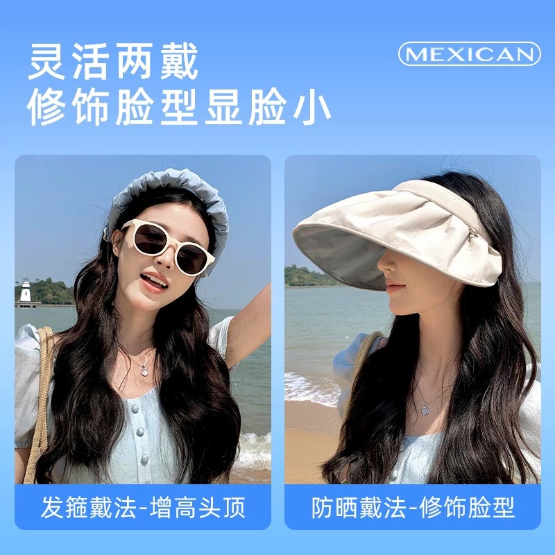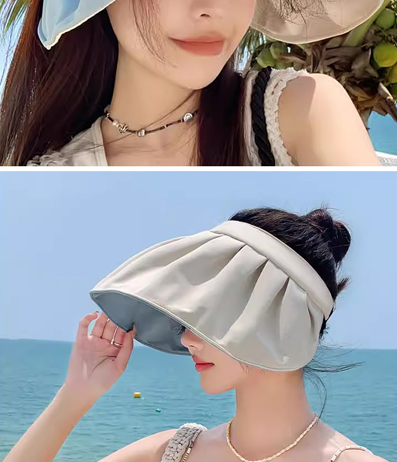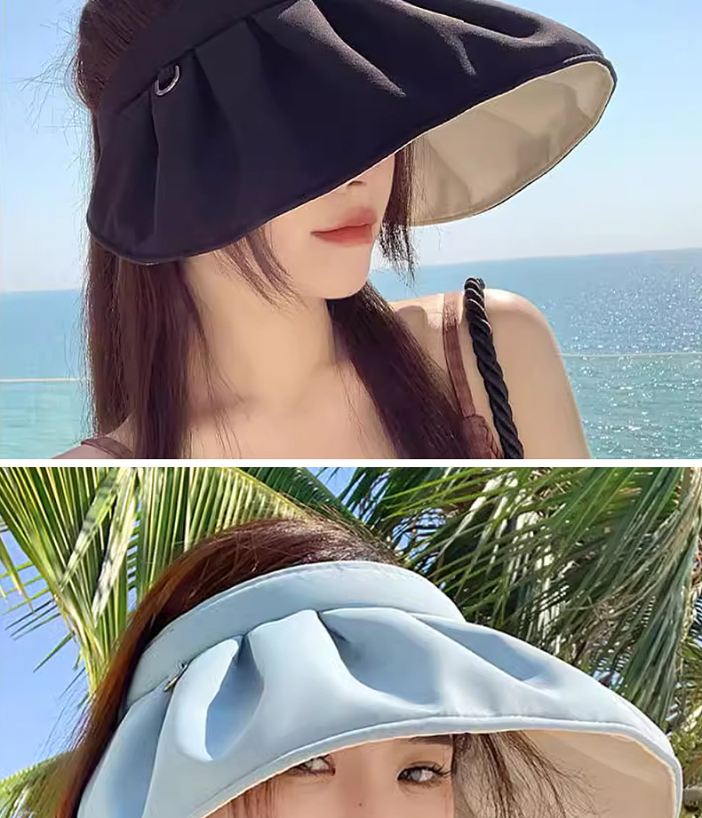 夏季新款双面贝壳防晒帽女防紫外线沙滩遮阳帽旅游空顶运动帽太阳