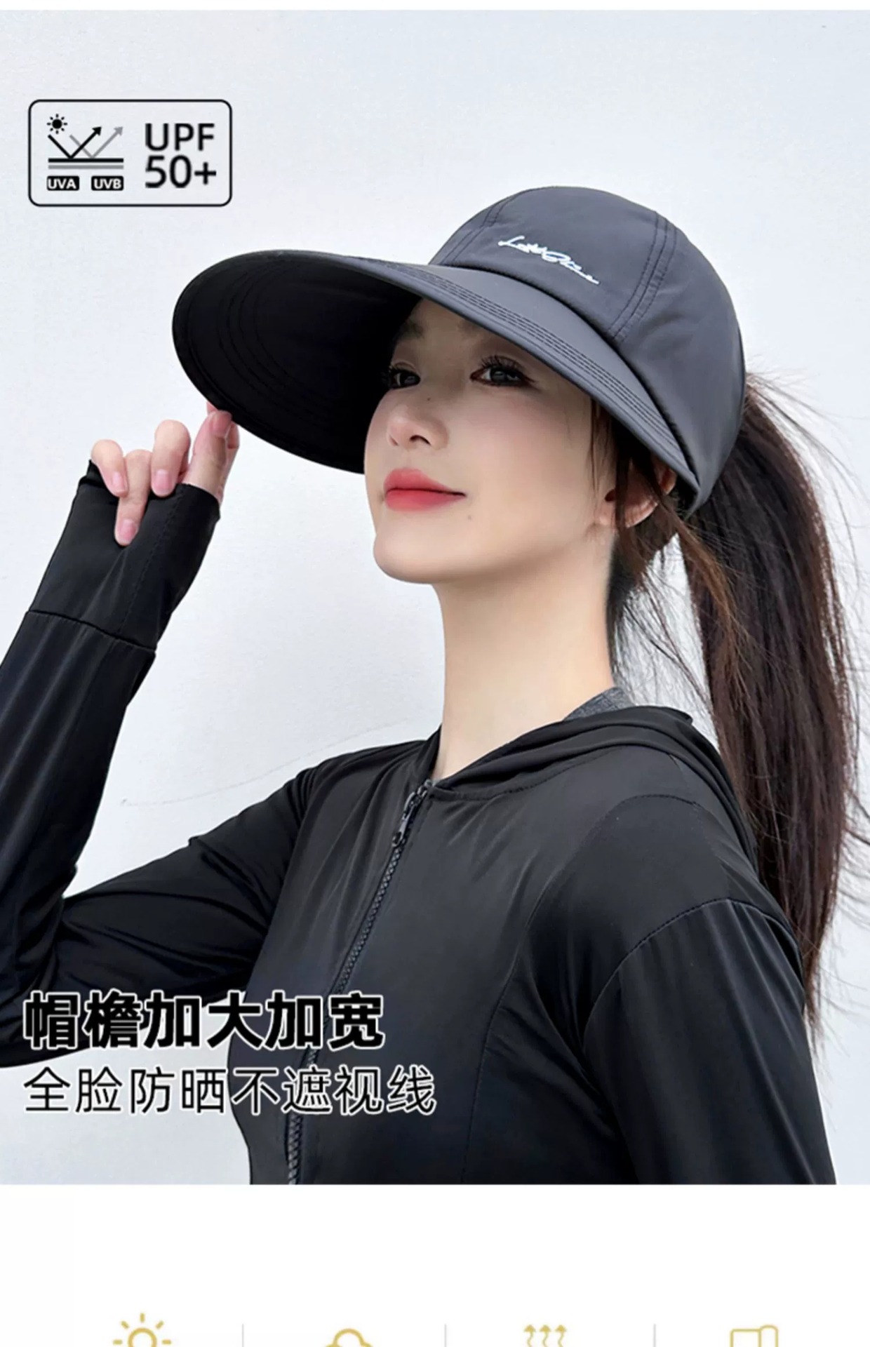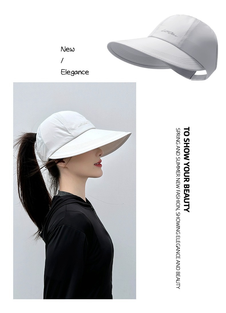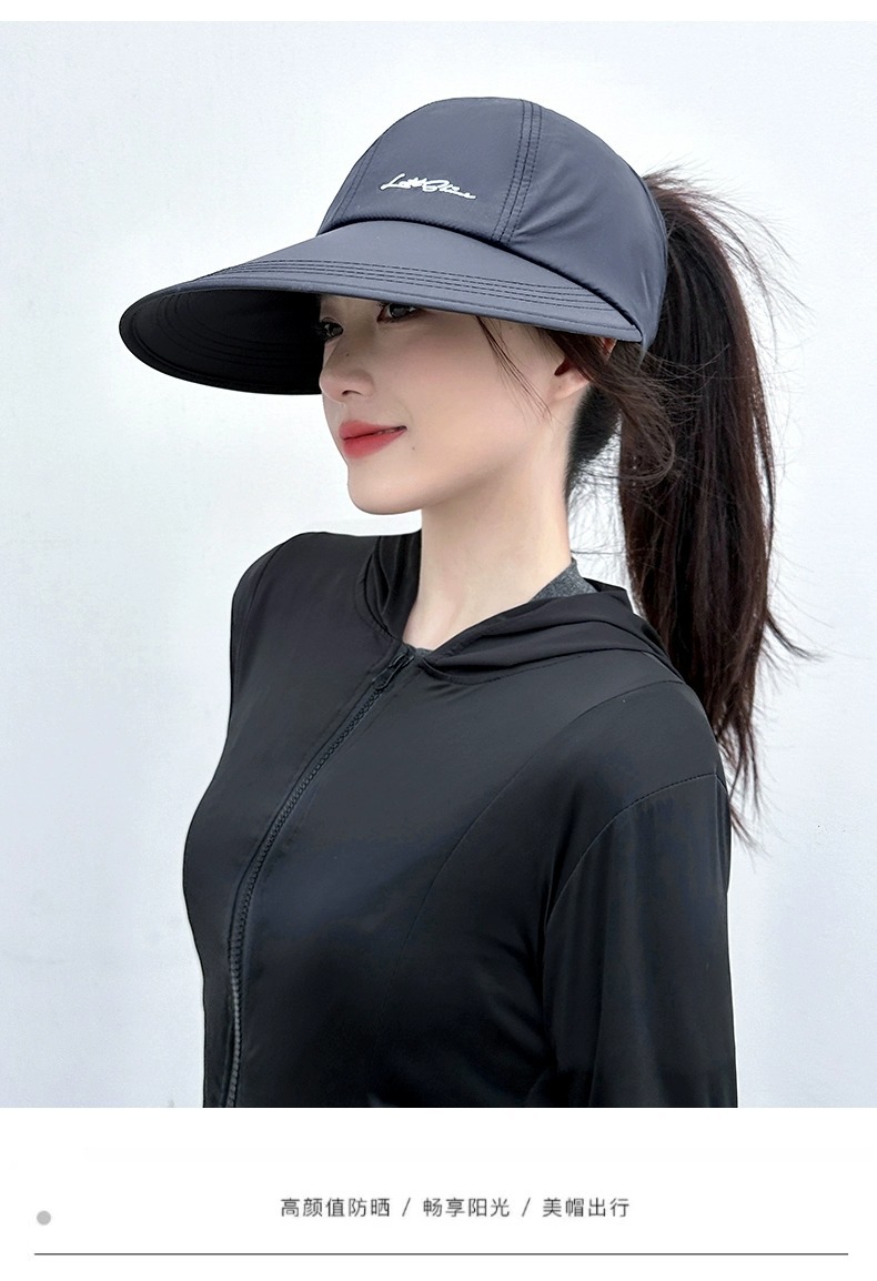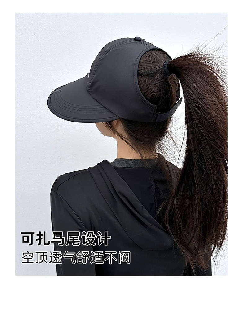 可扎高马尾速干大帽檐太阳帽子女夏季宽檐遮阳防晒帽运动空顶帽潮
