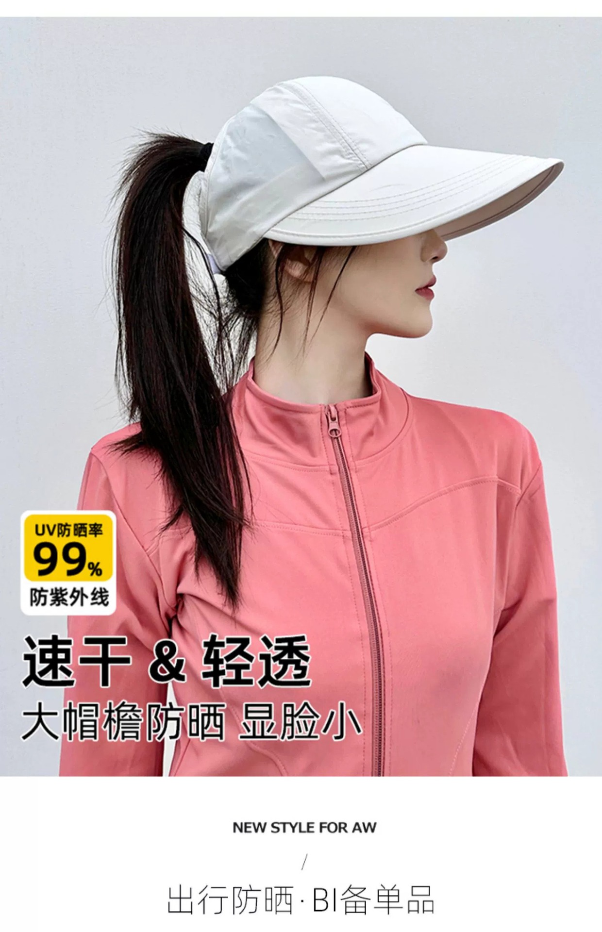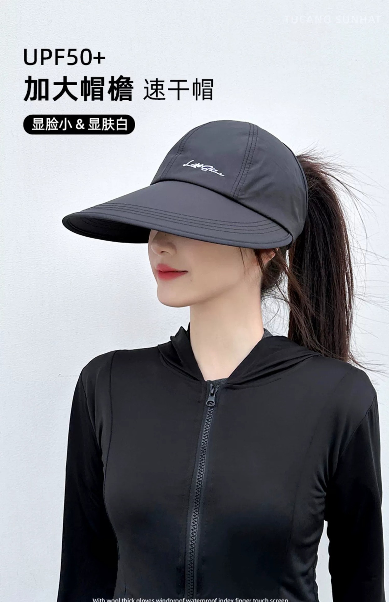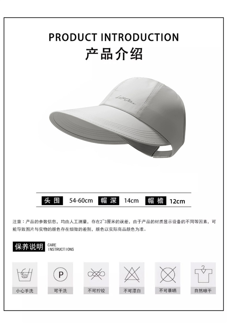可扎高马尾速干大帽檐太阳帽子女夏季宽檐遮阳防晒帽运动空顶帽潮