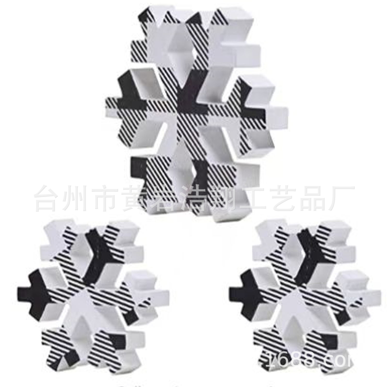 父亲节感恩礼物装饰工艺品欧式格子 蓝白雪花摆件3个装圣诞节木质