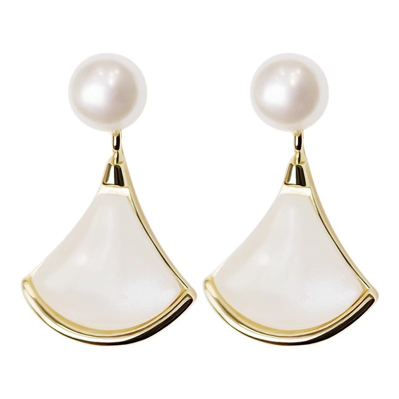 S925银针扇形珍珠耳钉2025新款爆款耳环高级小众气质精致百搭耳饰