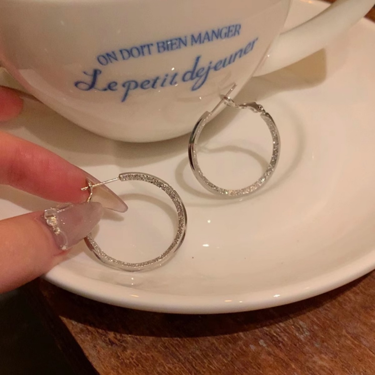 S925银针简约耳圈女素圈耳环高级感耳饰新款2024爆款耳钉耳扣批发