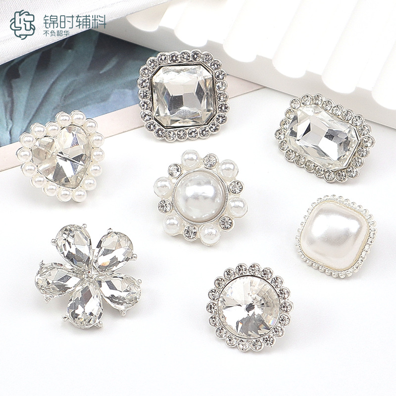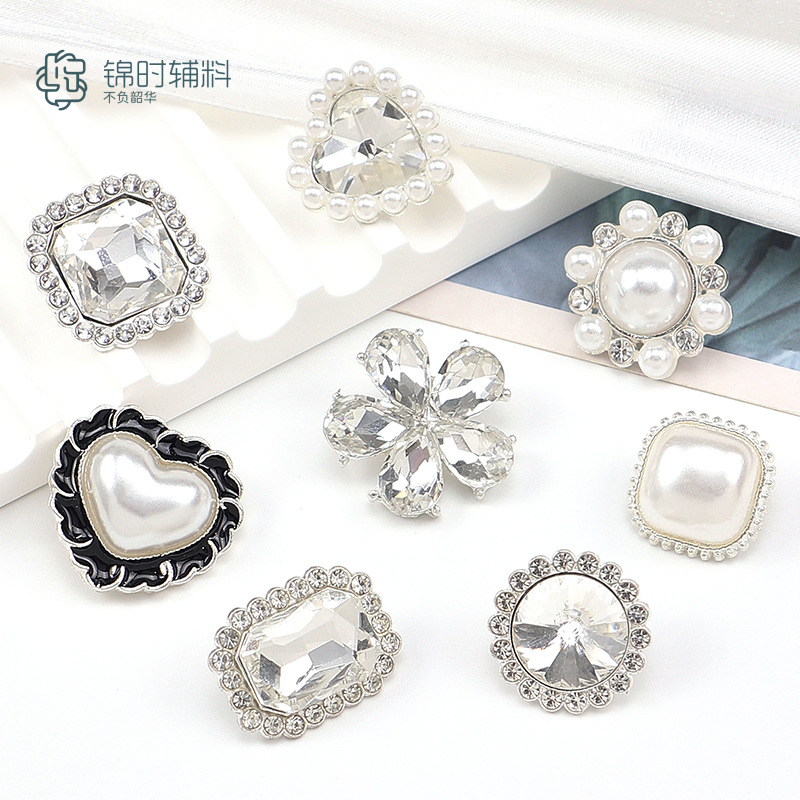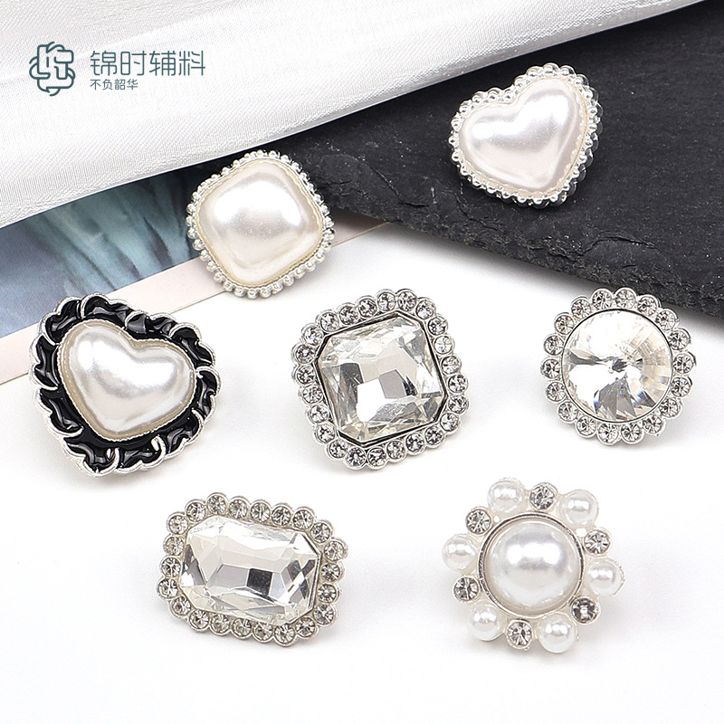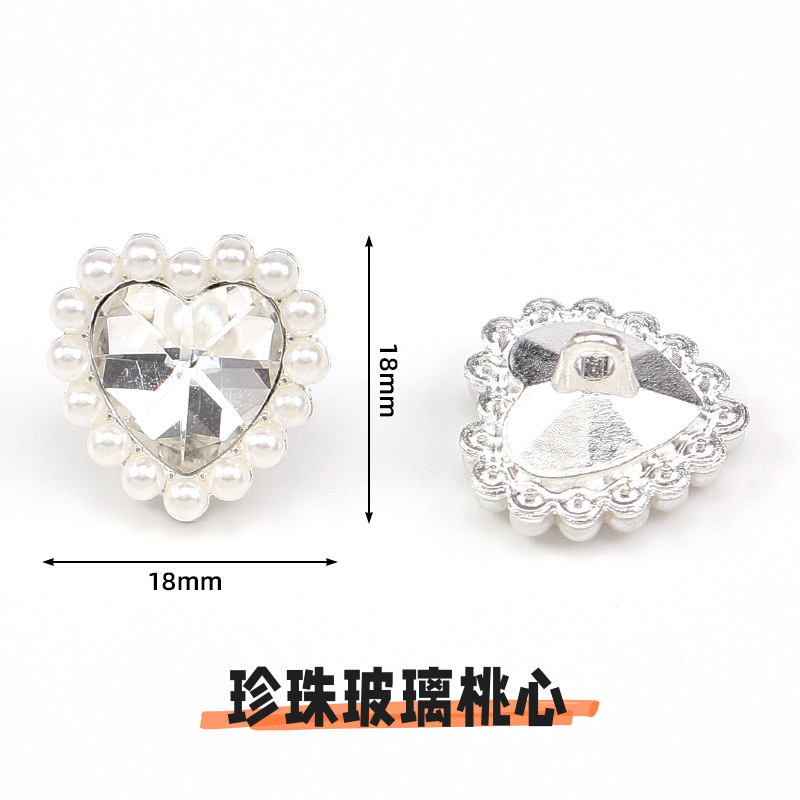 新款跨境热销金属纽扣小香风桃心镶钻手缝扣DIY服装辅料配饰扣子