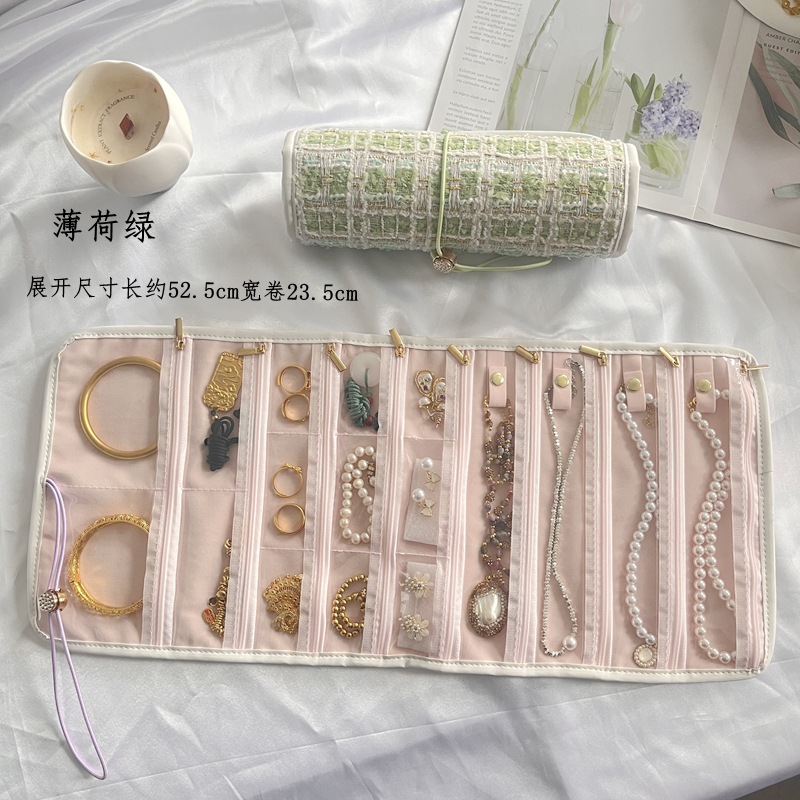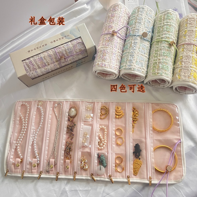 小香风首饰收纳册黄金项链首饰盒旅行便携饰品司凤同款透明首饰卷