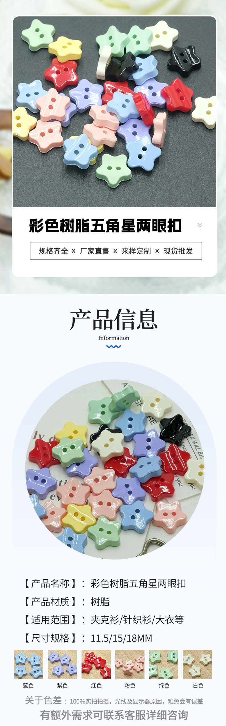 彩色高档树脂五角星两眼扣小香风衬衫树脂纽扣开衫毛衣扣子批发