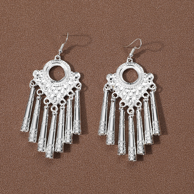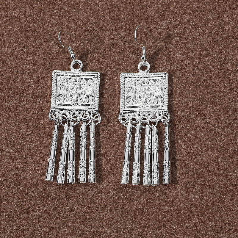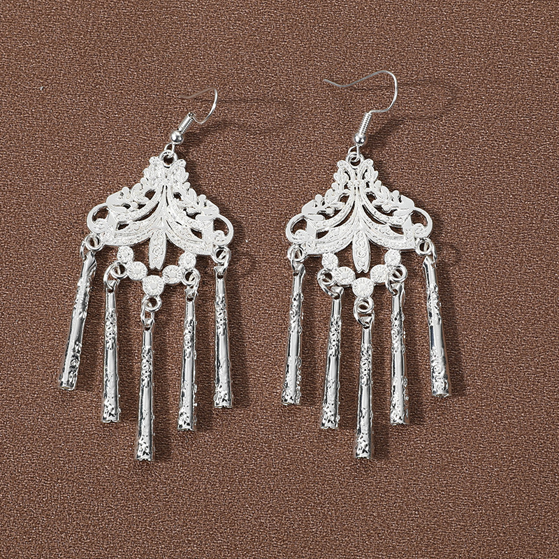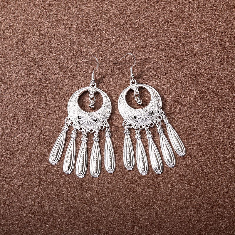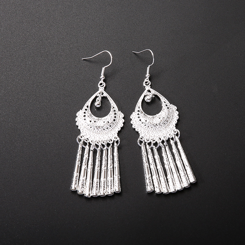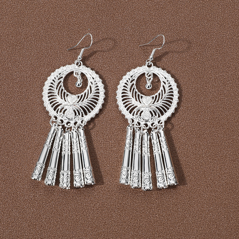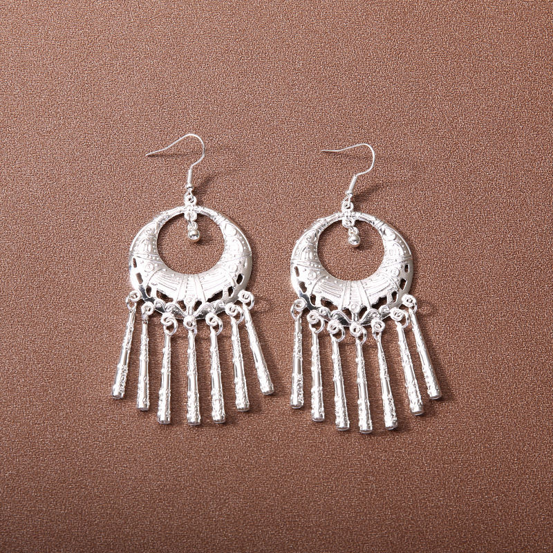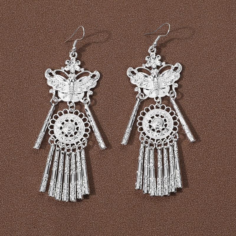 少数民族风苗银流苏耳环复古个性云南苗族夸张长款双层耳坠女耳饰