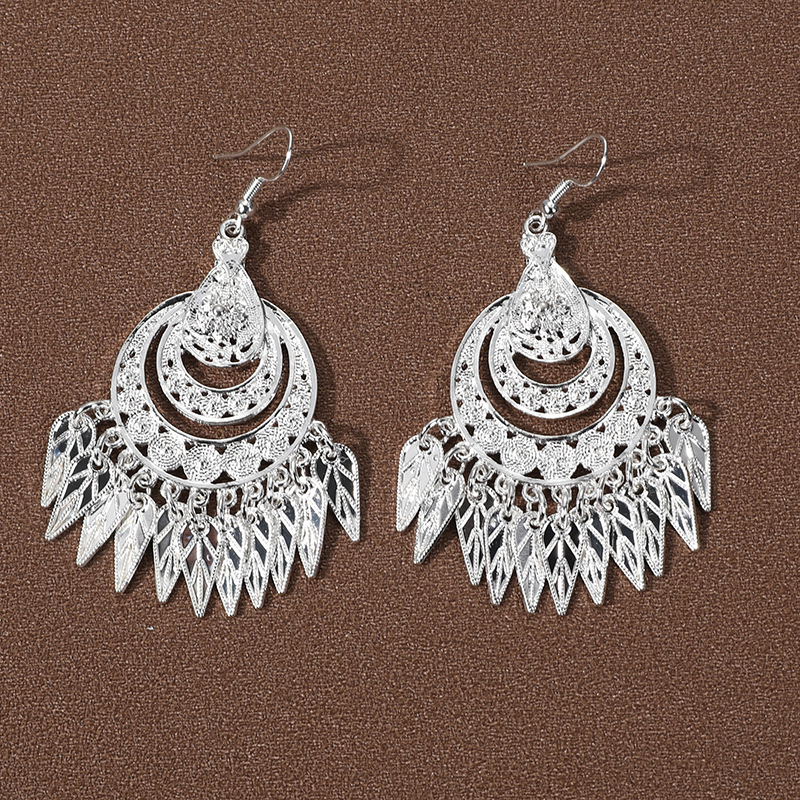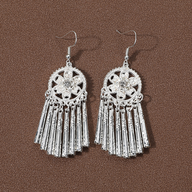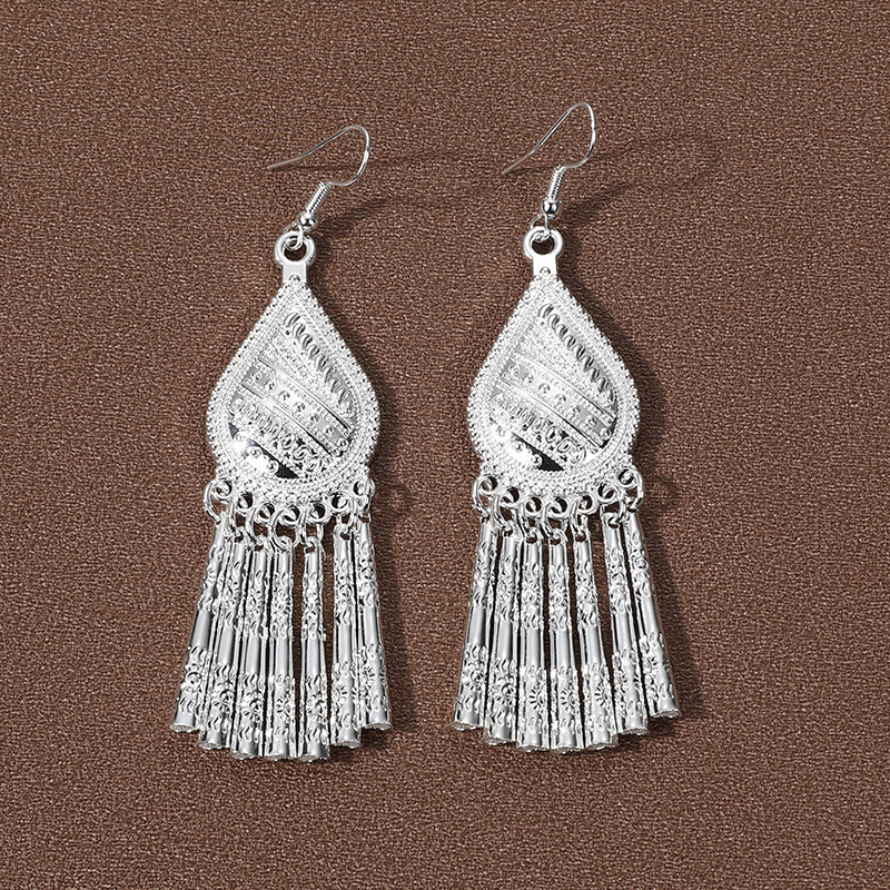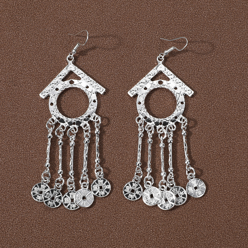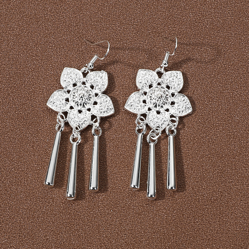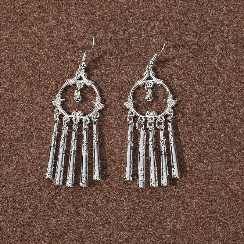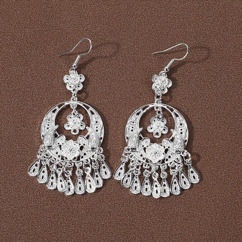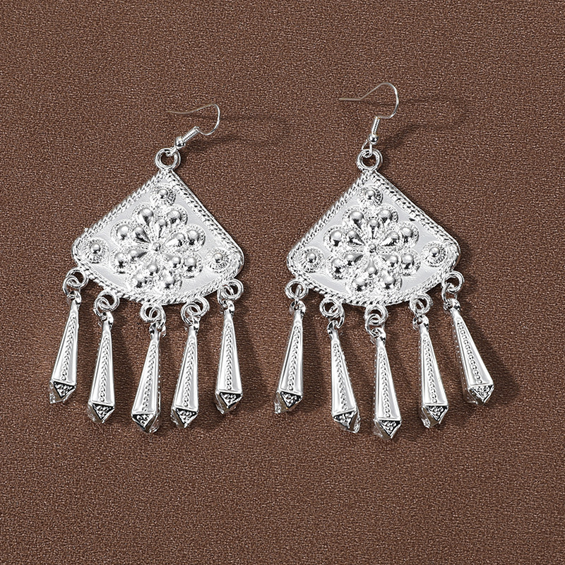 少数民族风苗银流苏耳环复古个性云南苗族夸张长款双层耳坠女耳饰