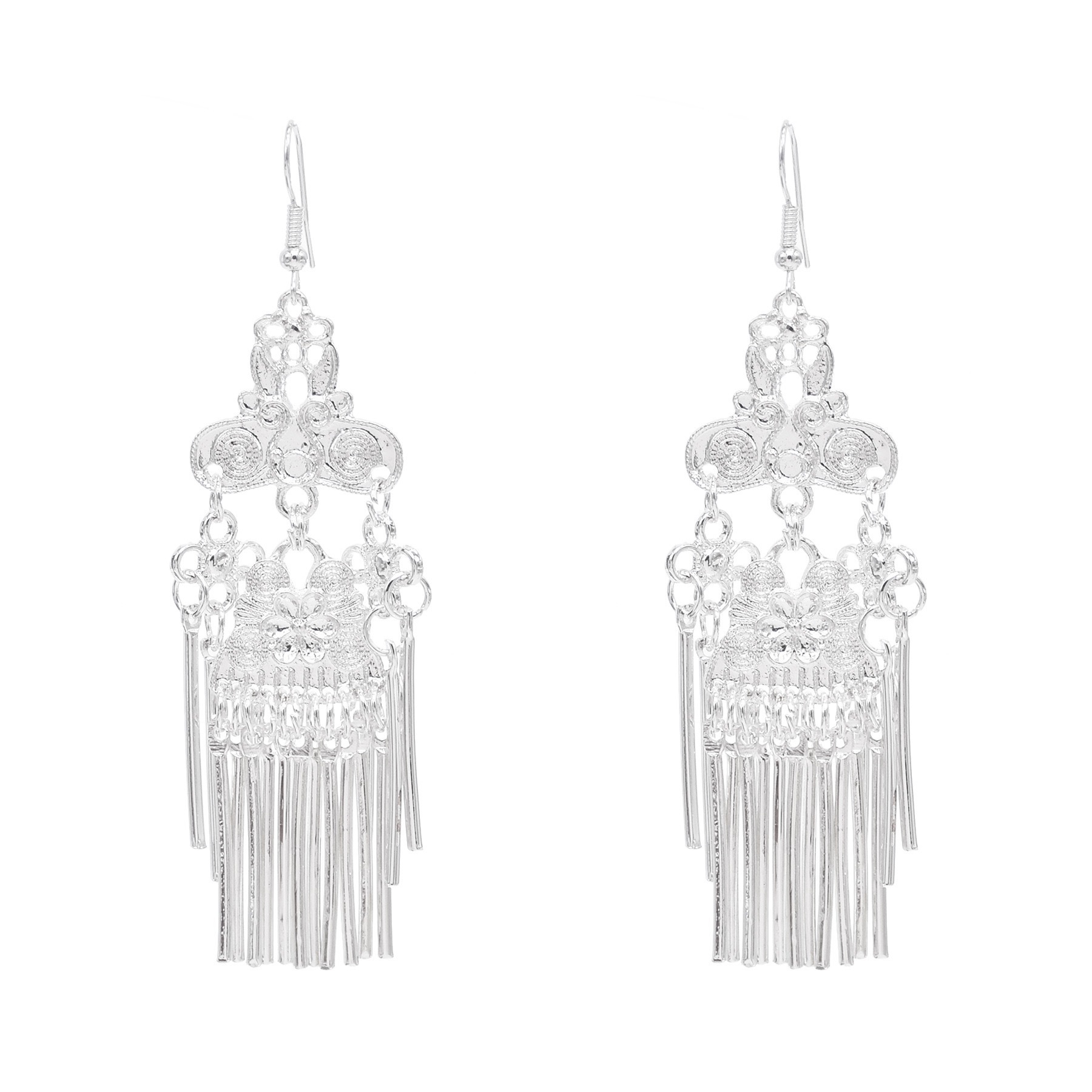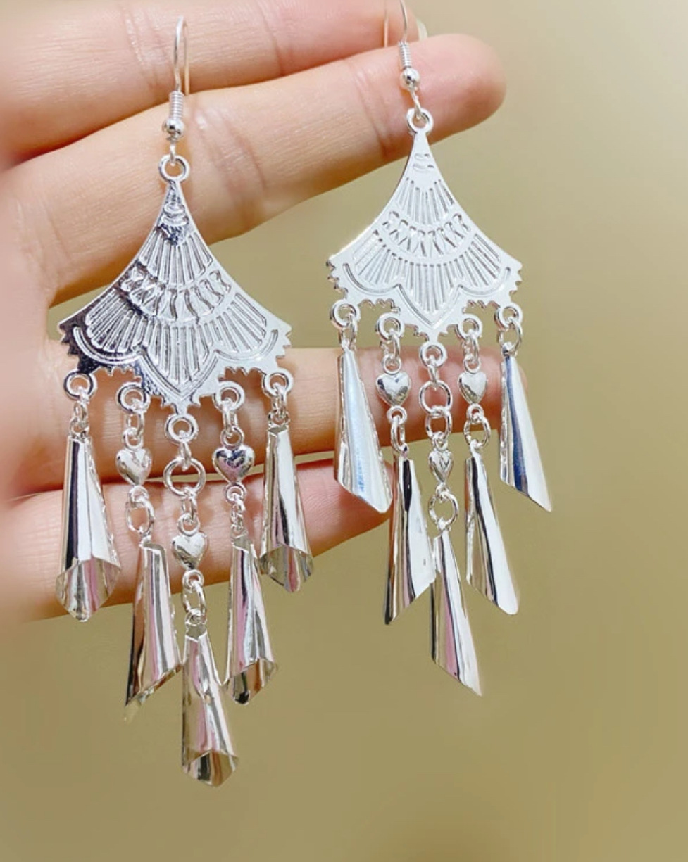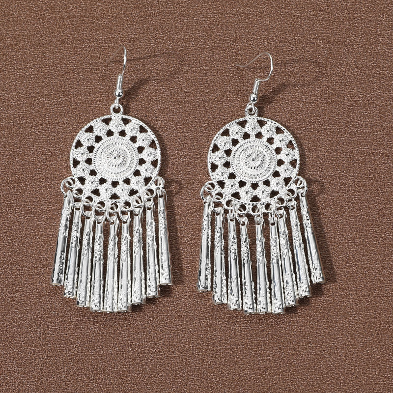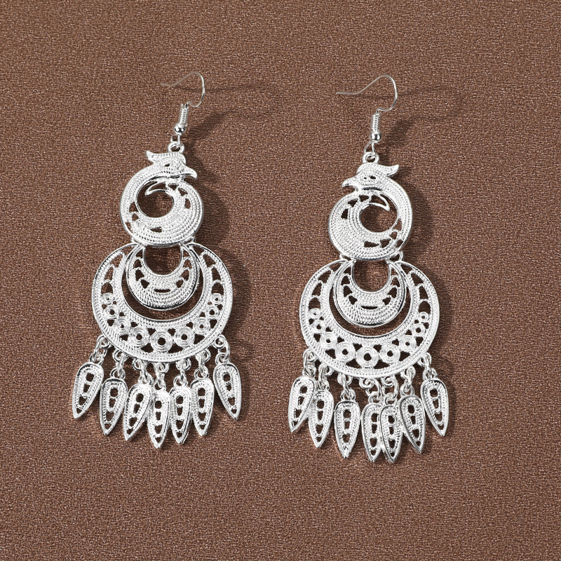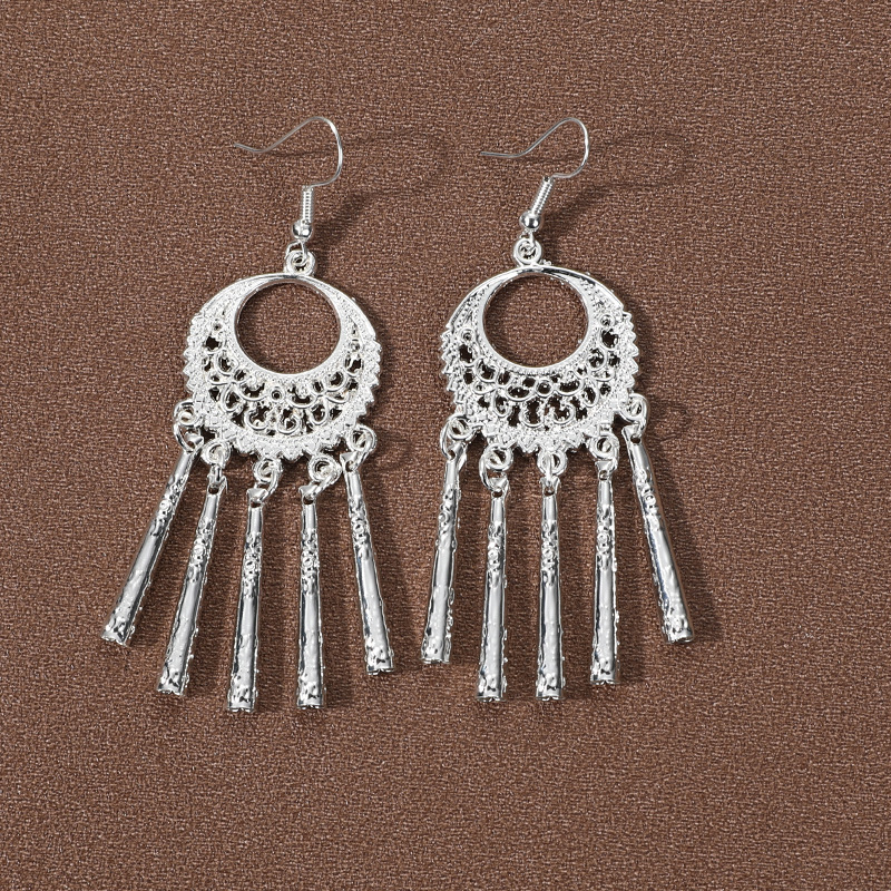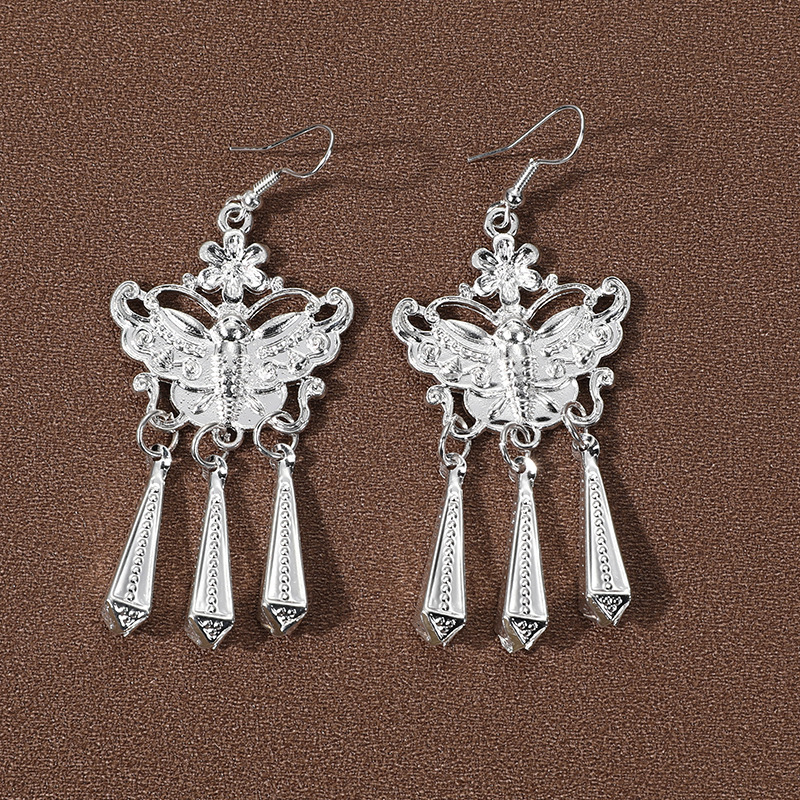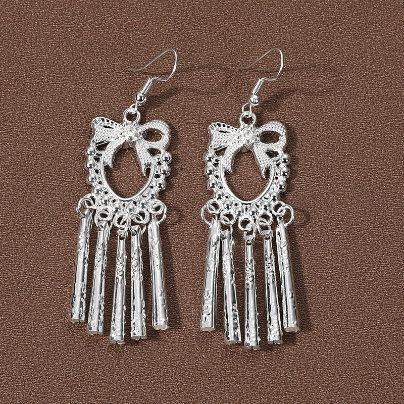 少数民族风苗银流苏耳环复古个性云南苗族夸张长款双层耳坠女耳饰
