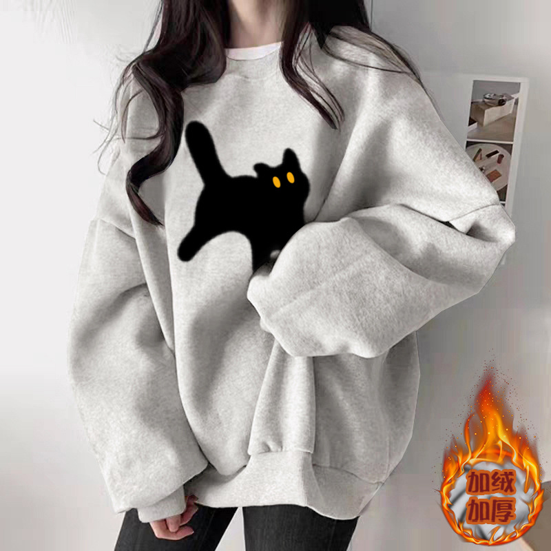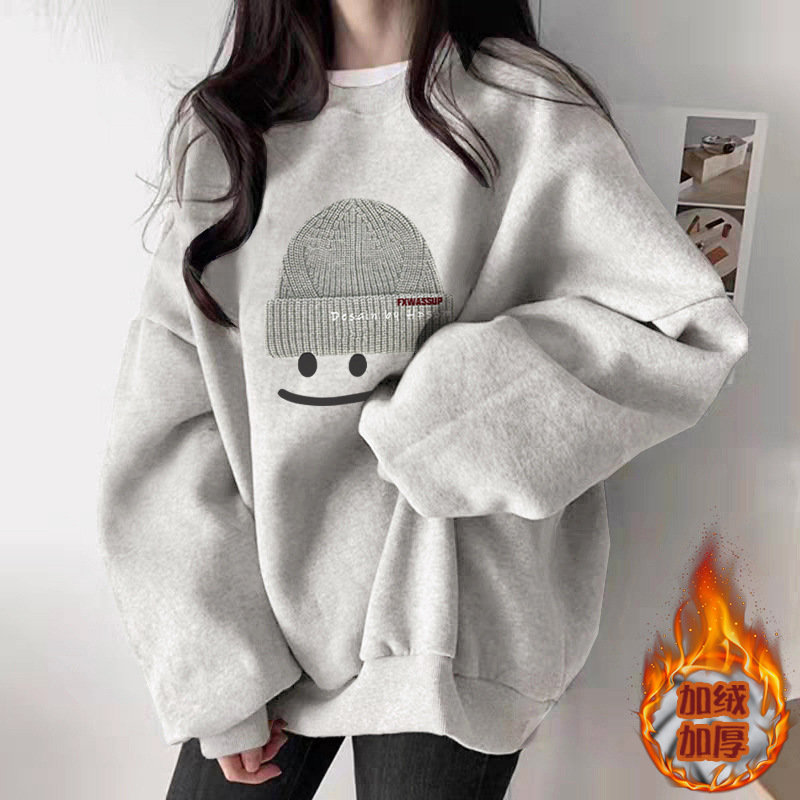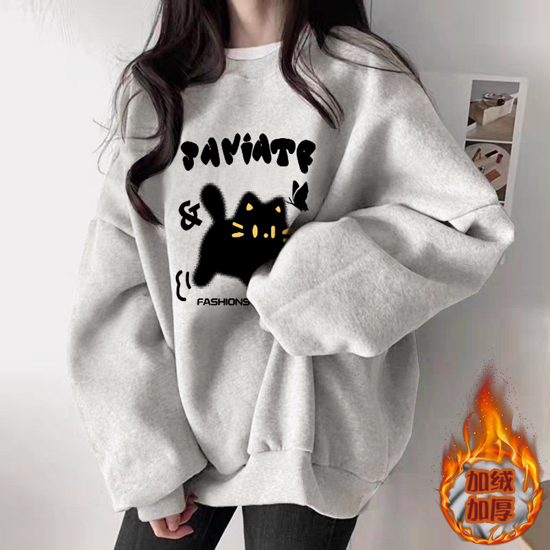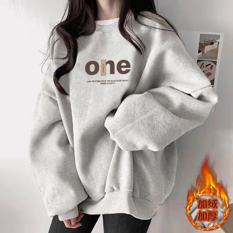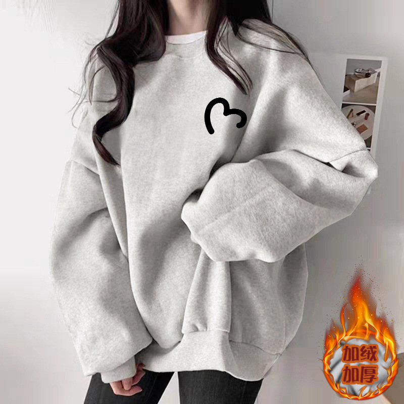 秋季白灰色圆领卫衣女2025新款爆款休闲百搭时尚洋气加绒加厚上衣
