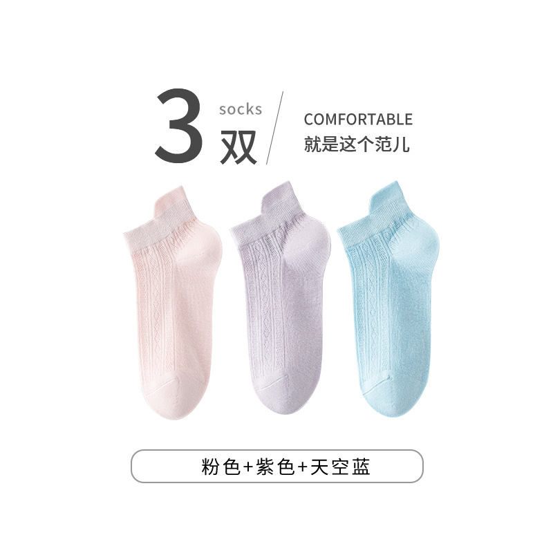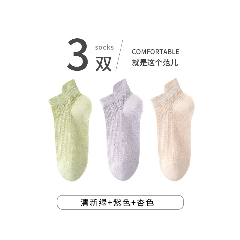 袜子女25夏季薄款透气网眼短筒女袜糖果色提耳浅口隐形网眼女袜子