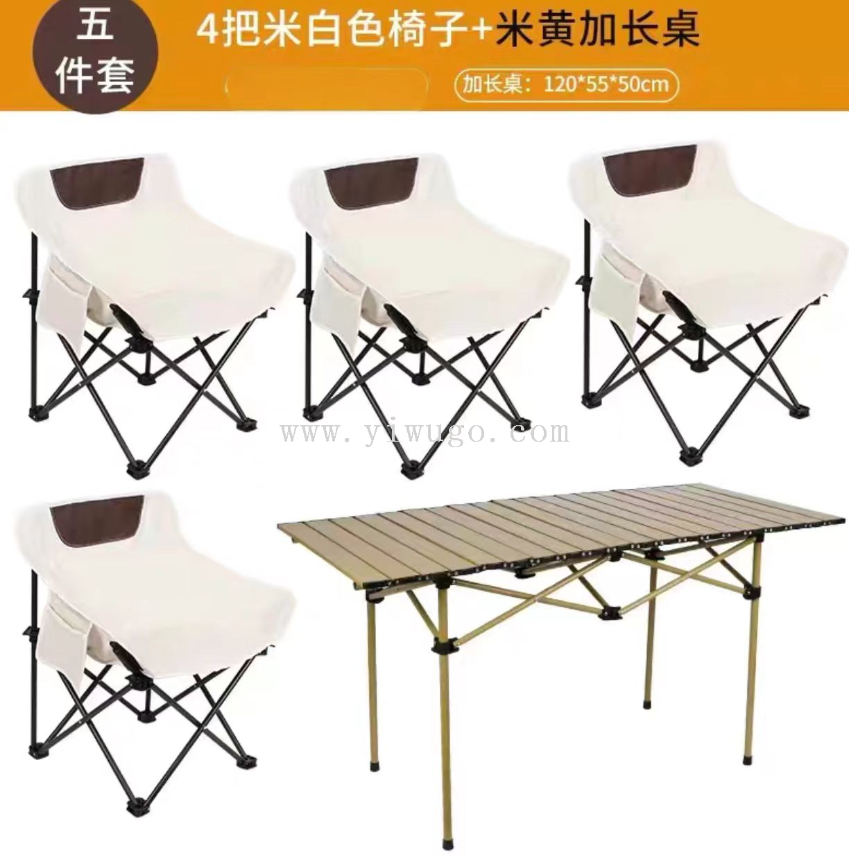 户外折叠桌子椅子蛋卷桌月亮椅露营折叠桌椅摆摊折叠桌椅7件套