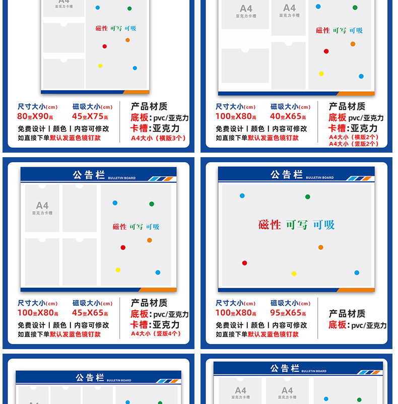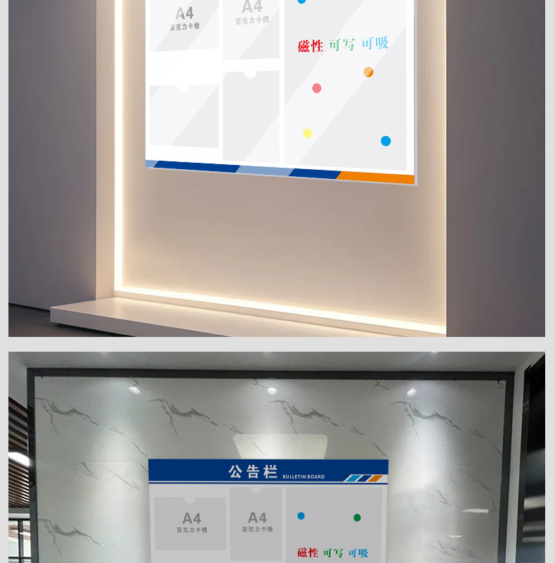 定制展示磁吸公示栏宣传栏 小区物业办公亚克力卡槽广告牌展示牌