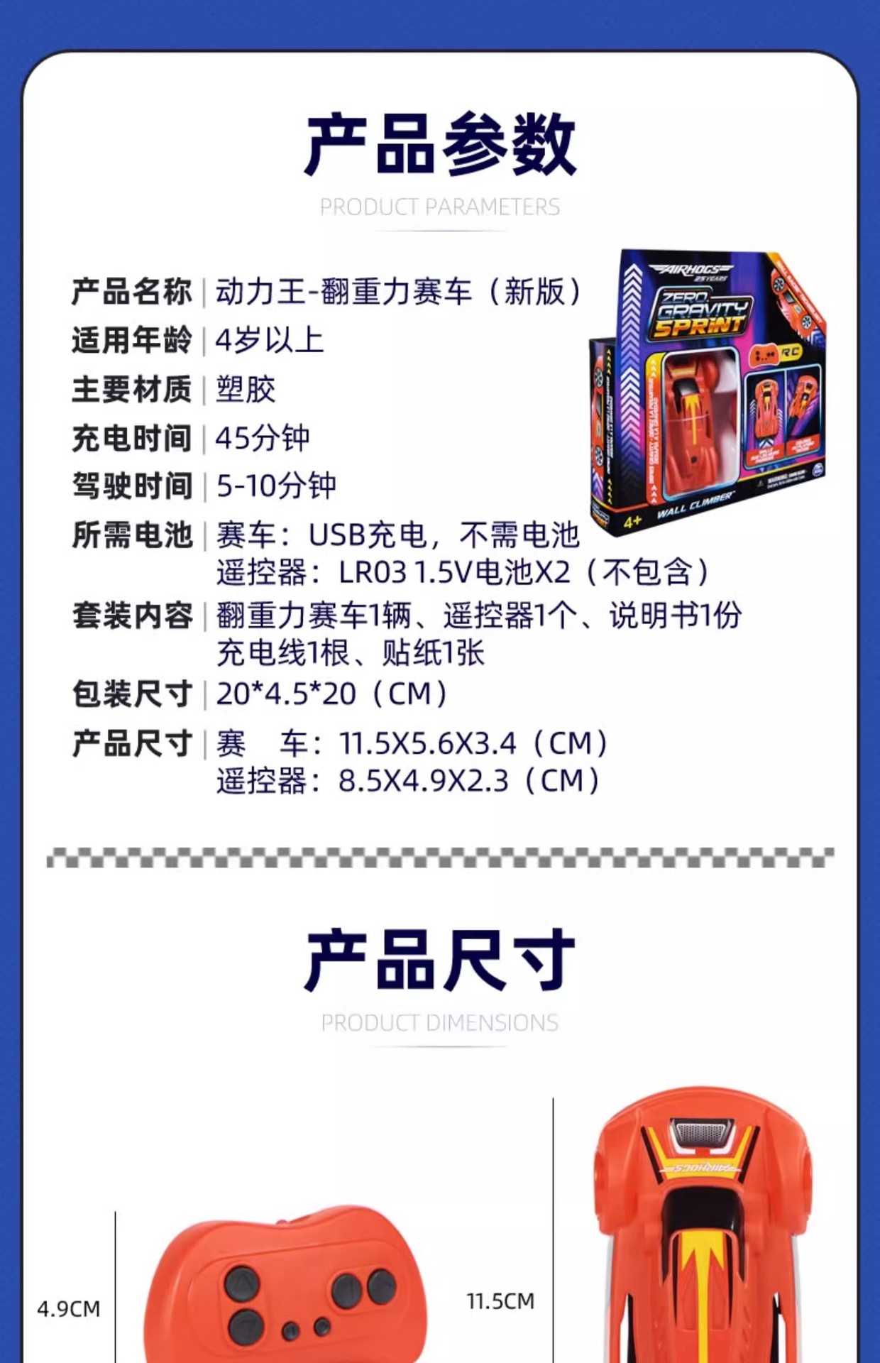 spinmaster翻重力赛车特技电动遥控汽车红外感应会爬墙儿童玩具车