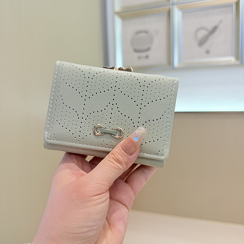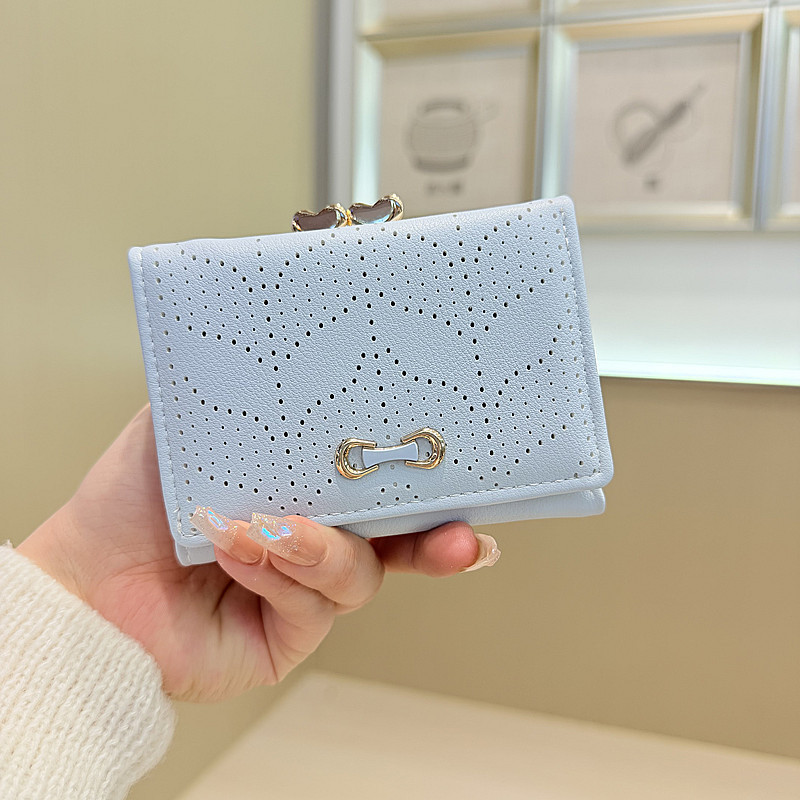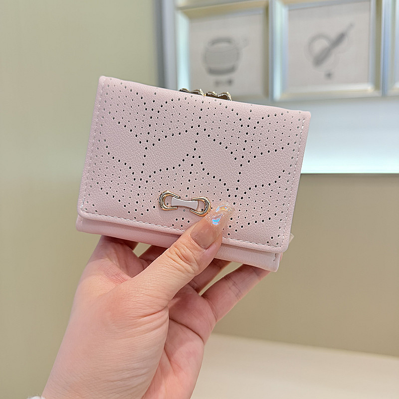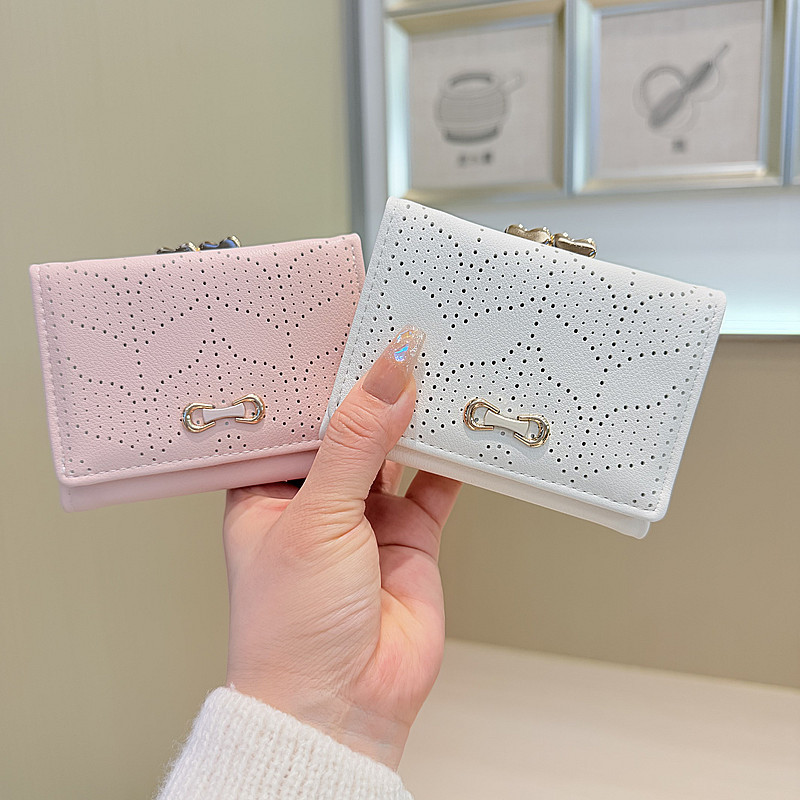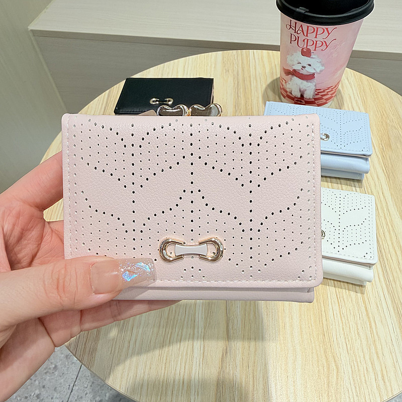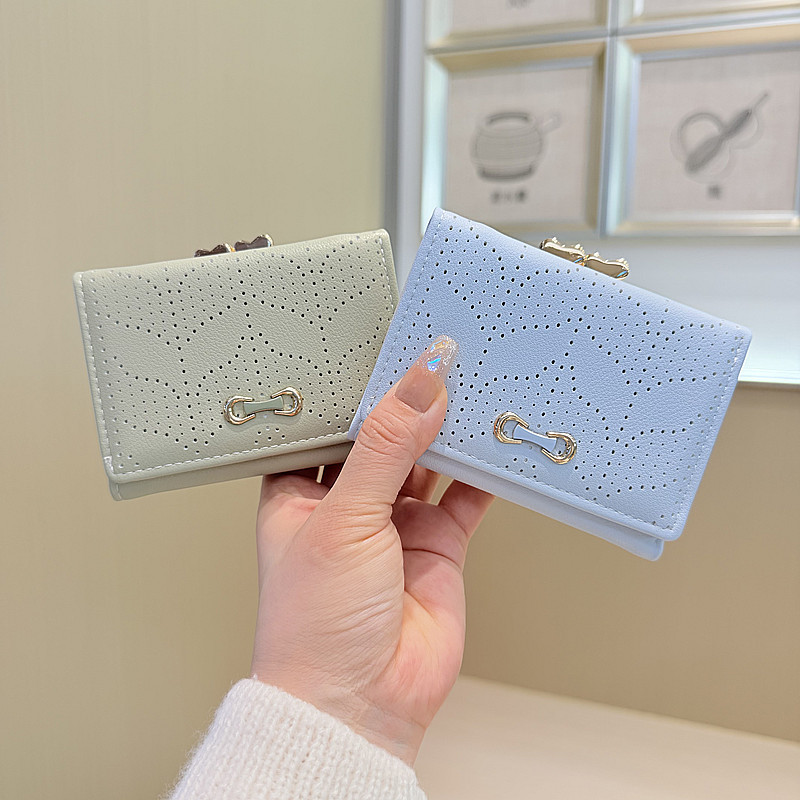 韩版新款简约小清新树叶镂空设计三折钱夹短款钱包零钱包女