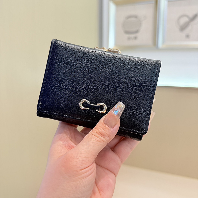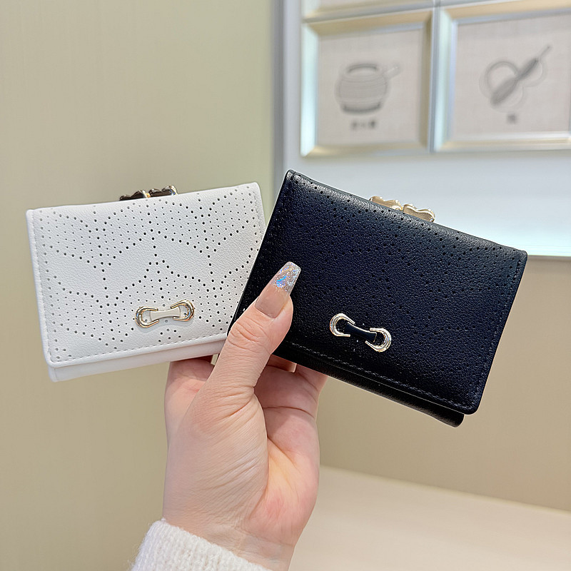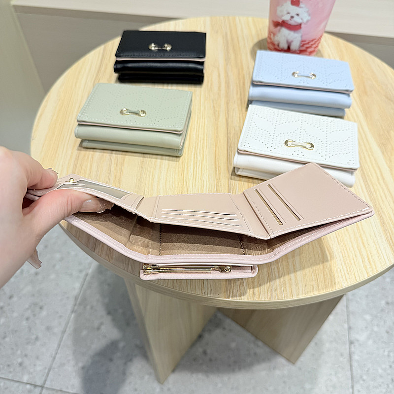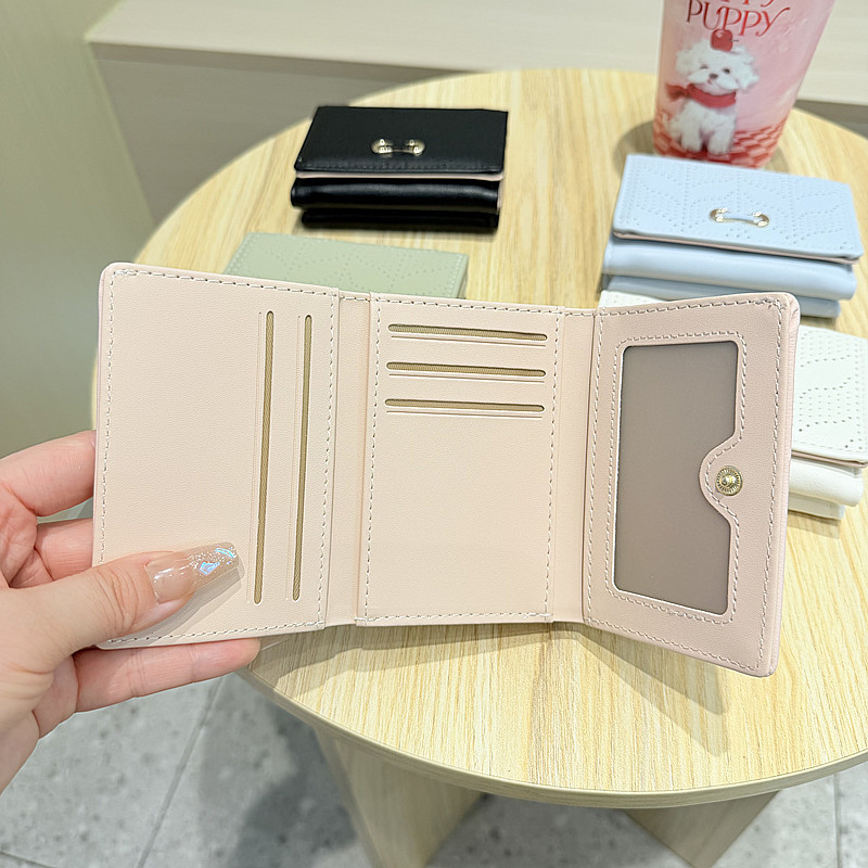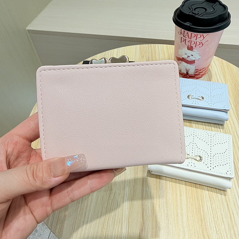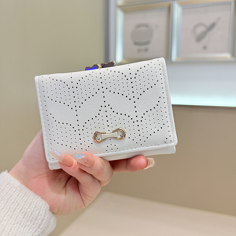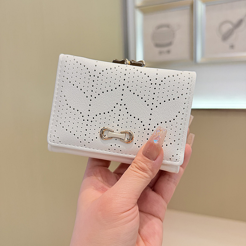韩版新款简约小清新树叶镂空设计三折钱夹短款钱包零钱包女