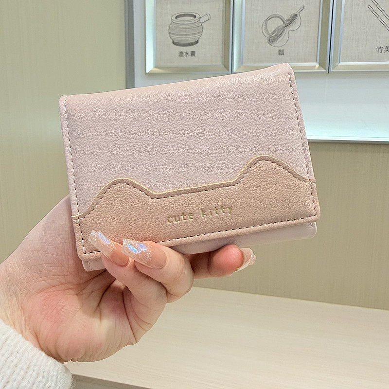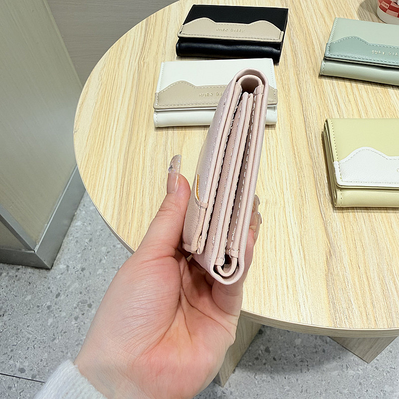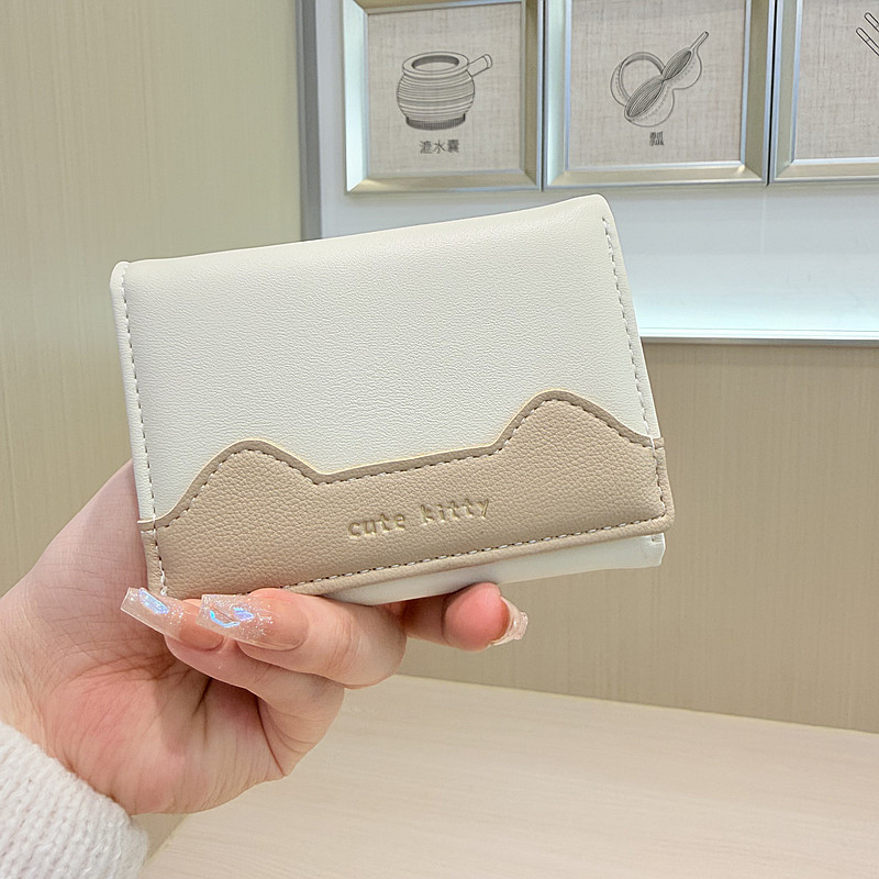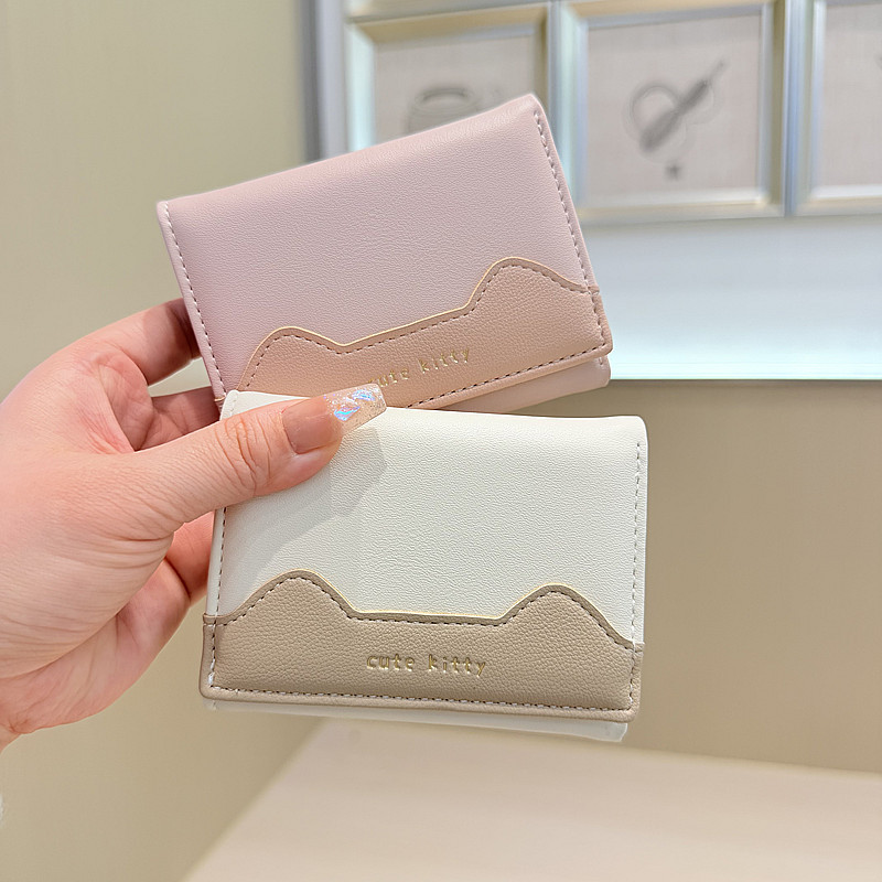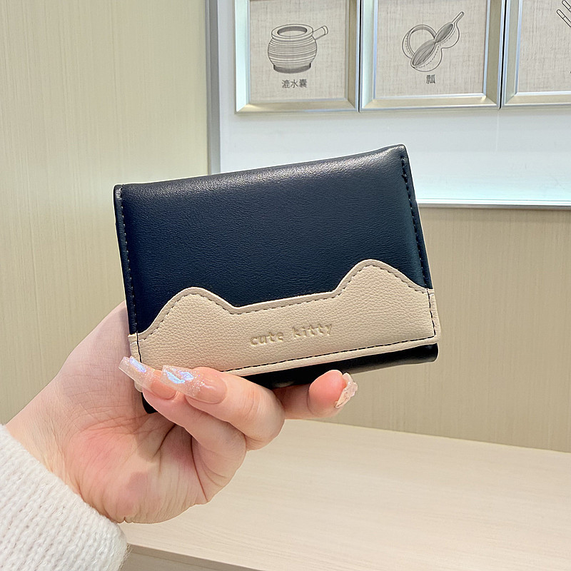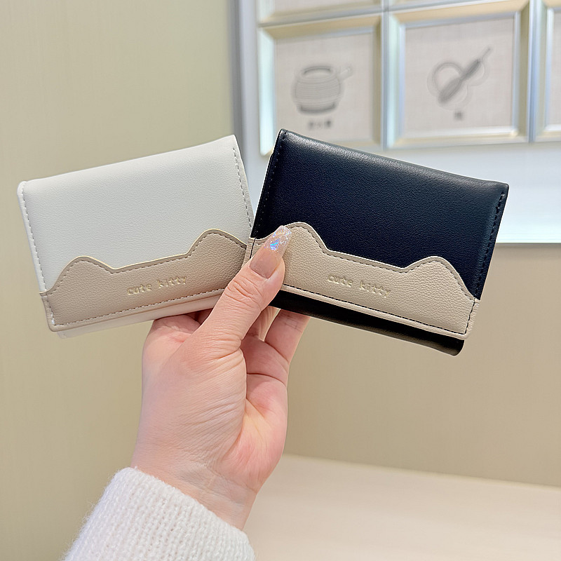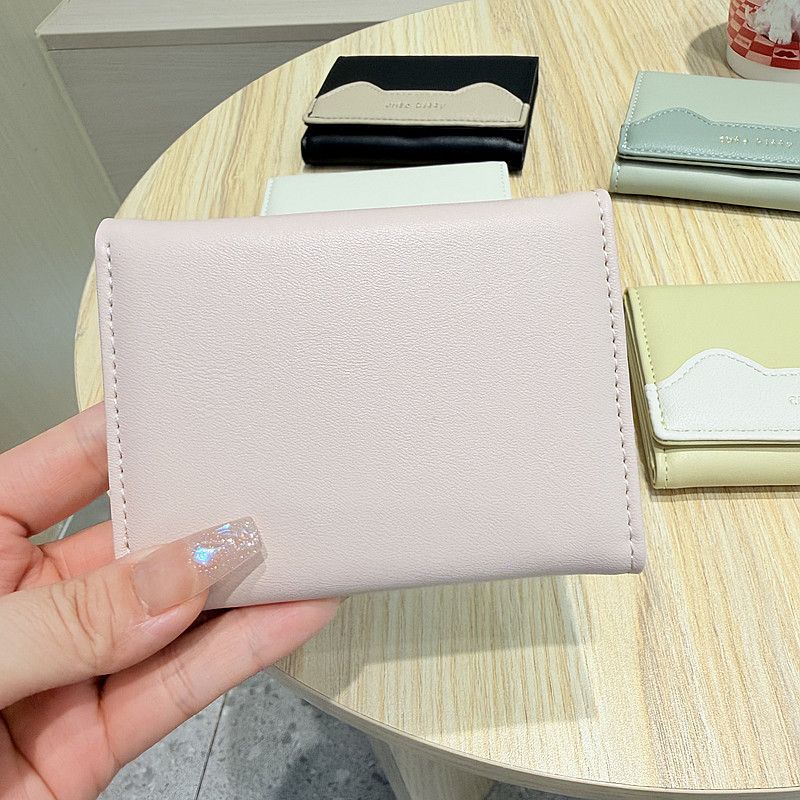 韩版新款简约撞色拼接字母三折薄款小巧学生迷你短款钱包女