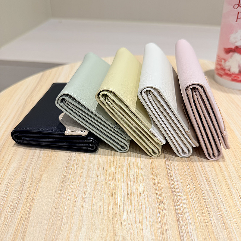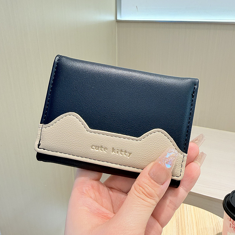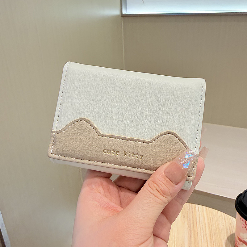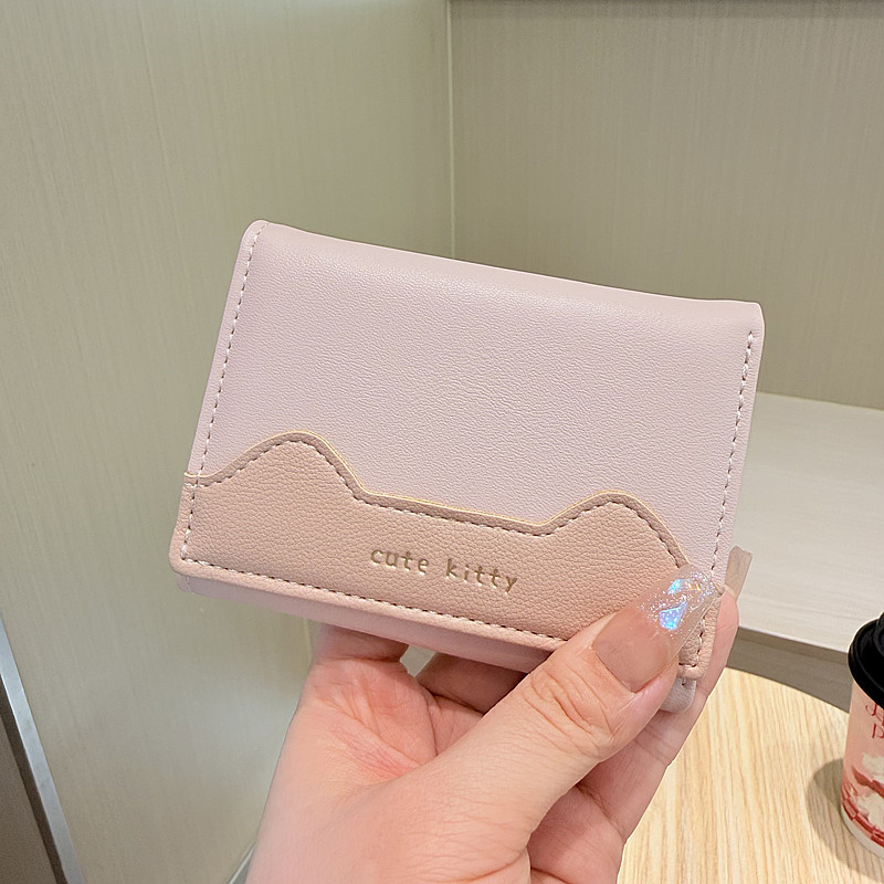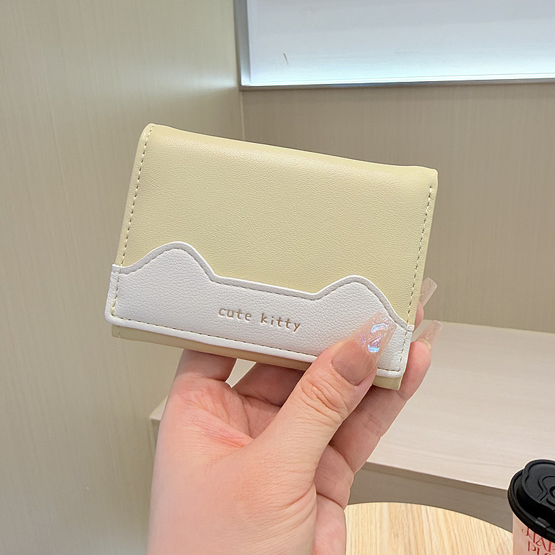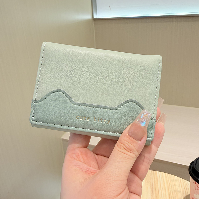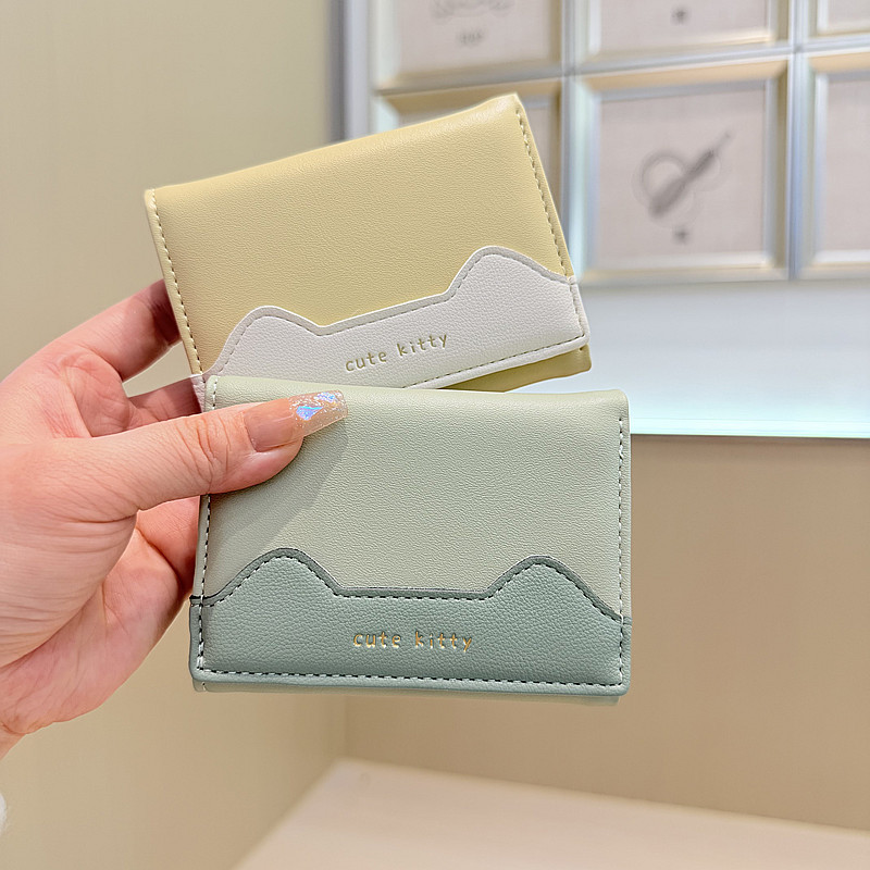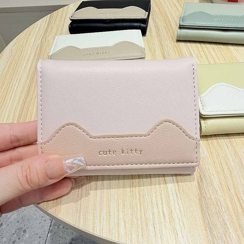 韩版新款简约撞色拼接字母三折薄款小巧学生迷你短款钱包女