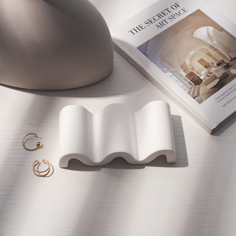ins极简白色波浪形不规则楼梯款石膏拍照摄影装饰摆件道具背景
