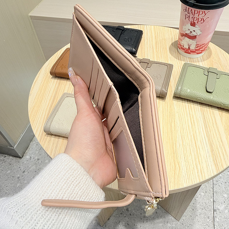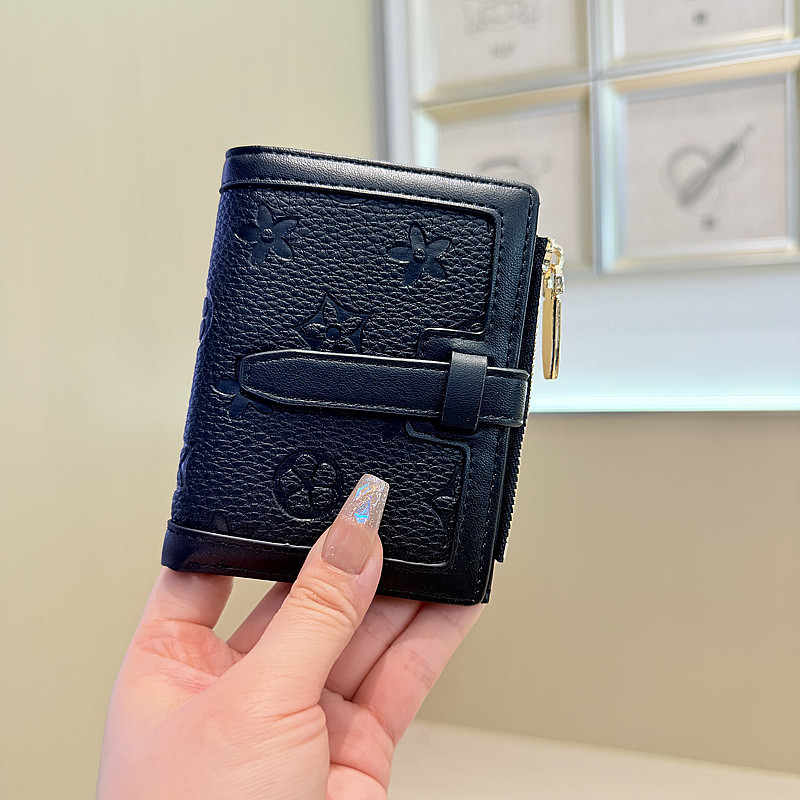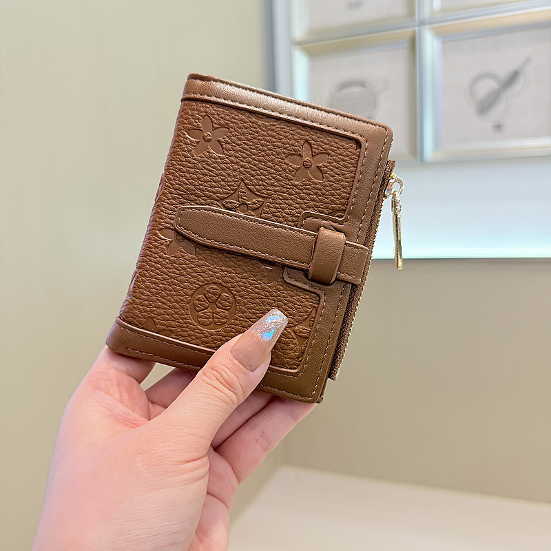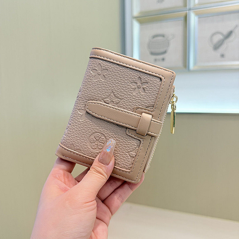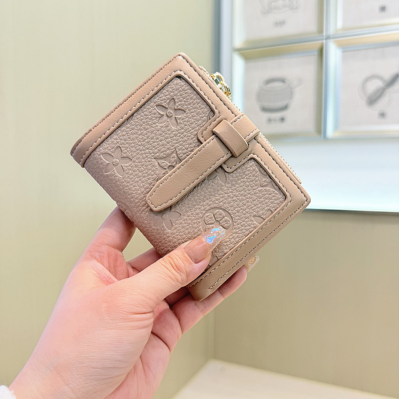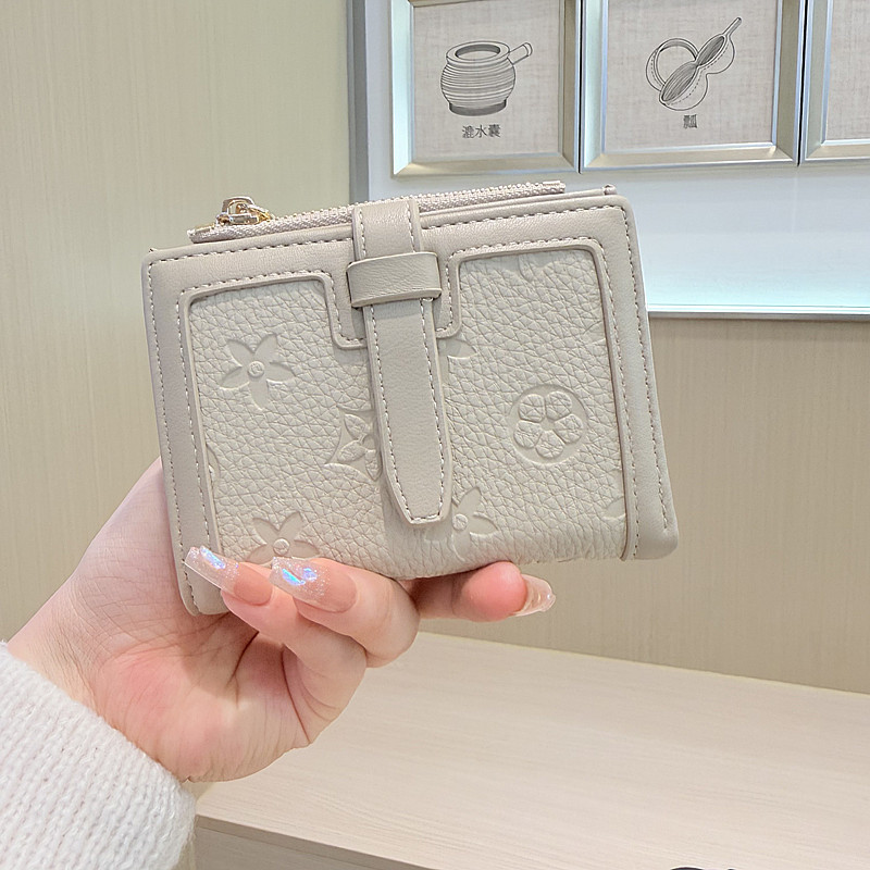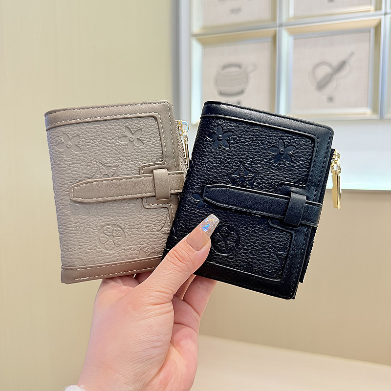 韩版简约纯色四叶草压花抽带高品质拉链搭扣两折短款钱包女
