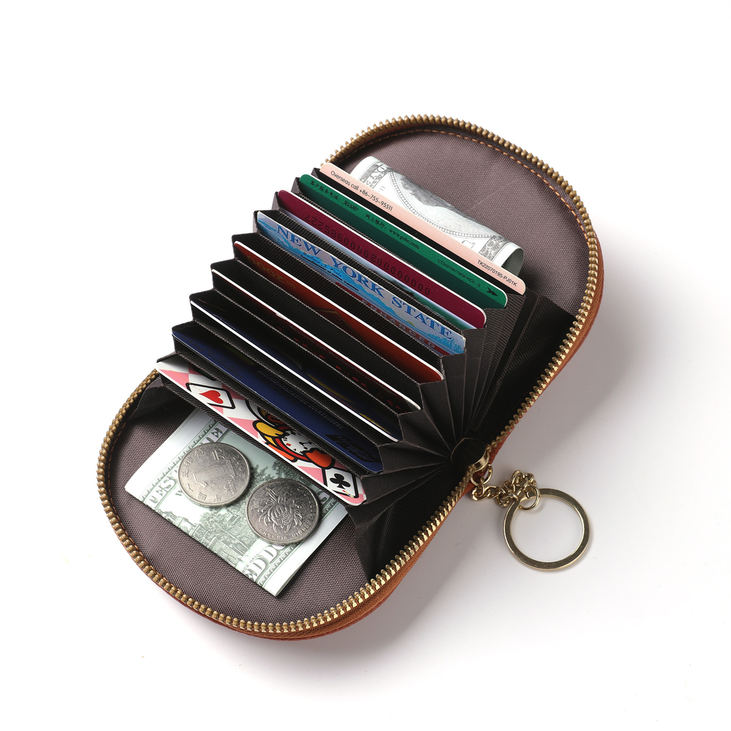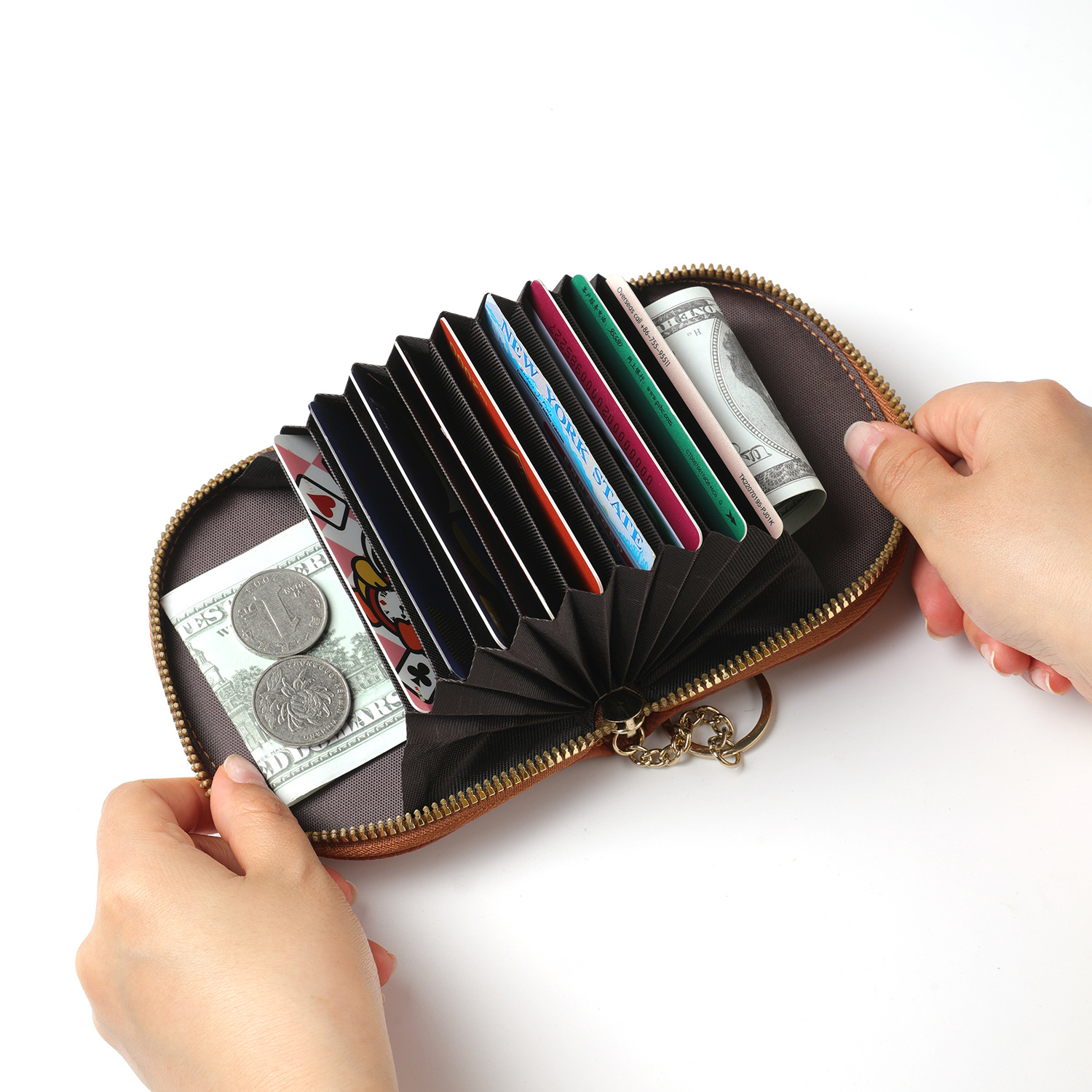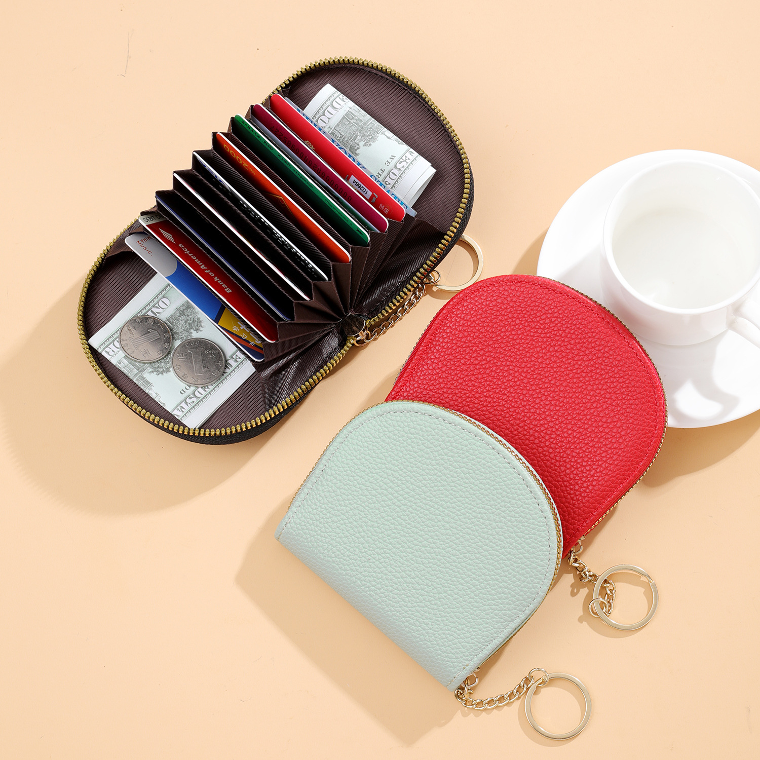 2026跨境烫画多卡位时尚纯色ins风拉链大容量收纳证件包风琴卡包