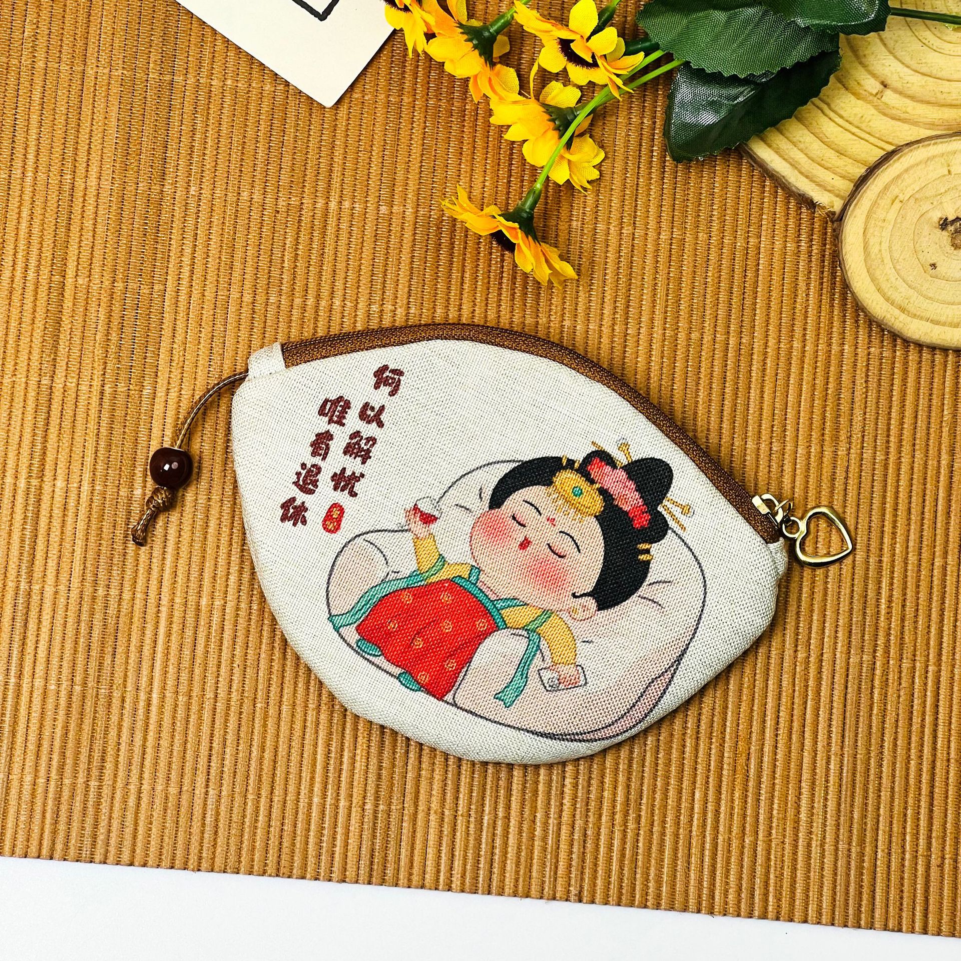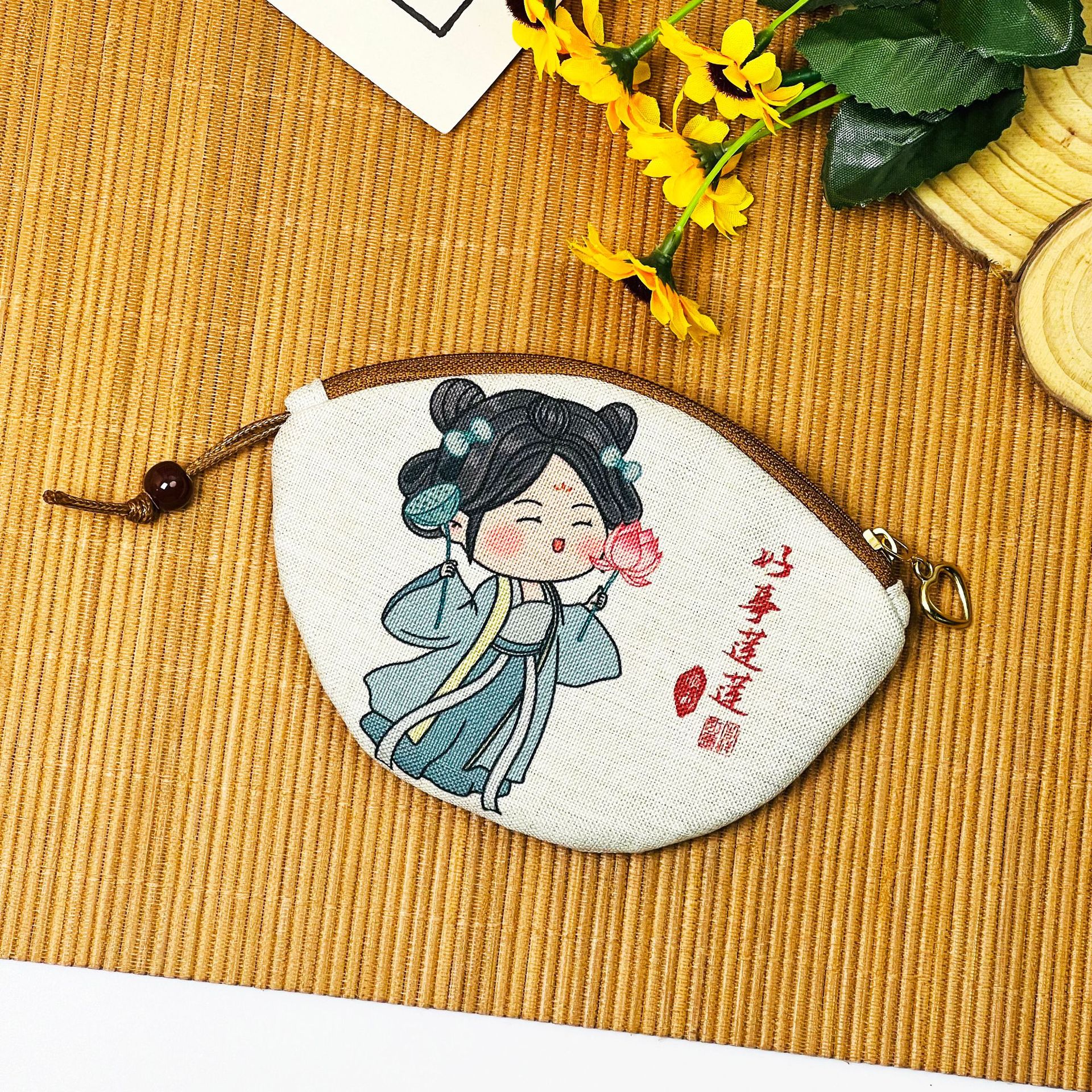 钥匙包淘宝爆款数码印花零钱包抽拉迷你小包国风手工布艺卡通卡包
