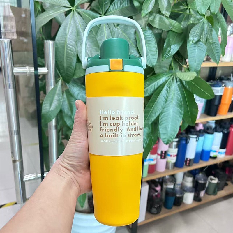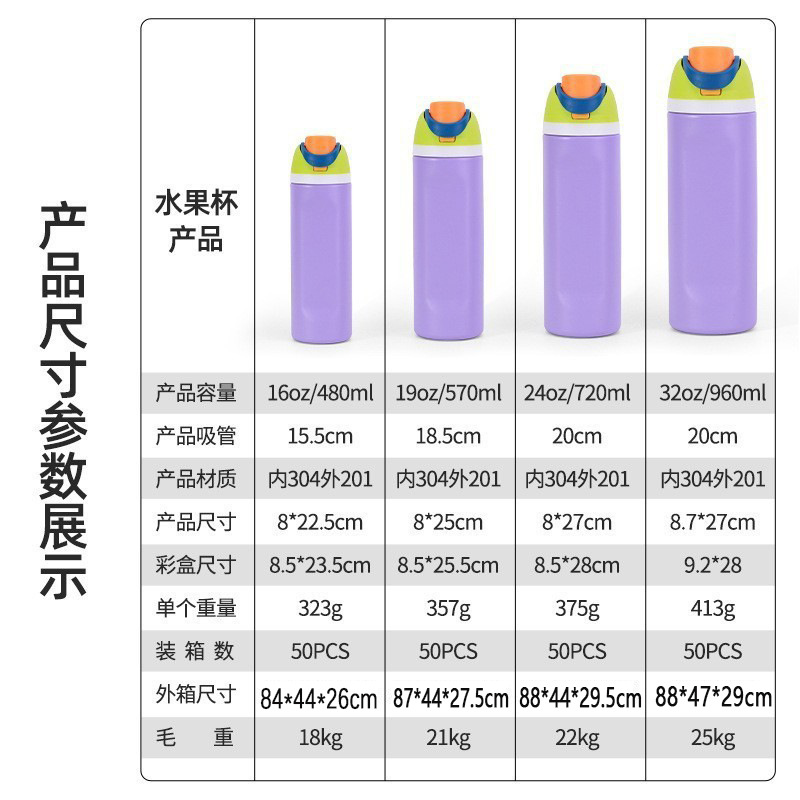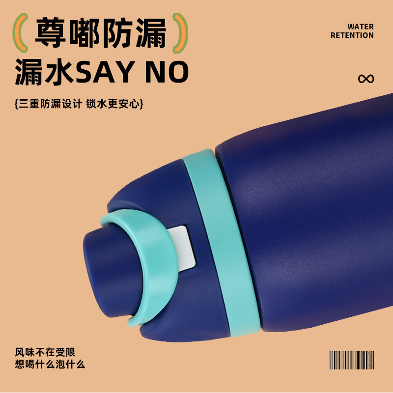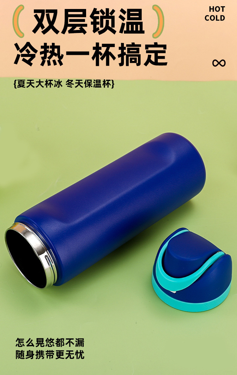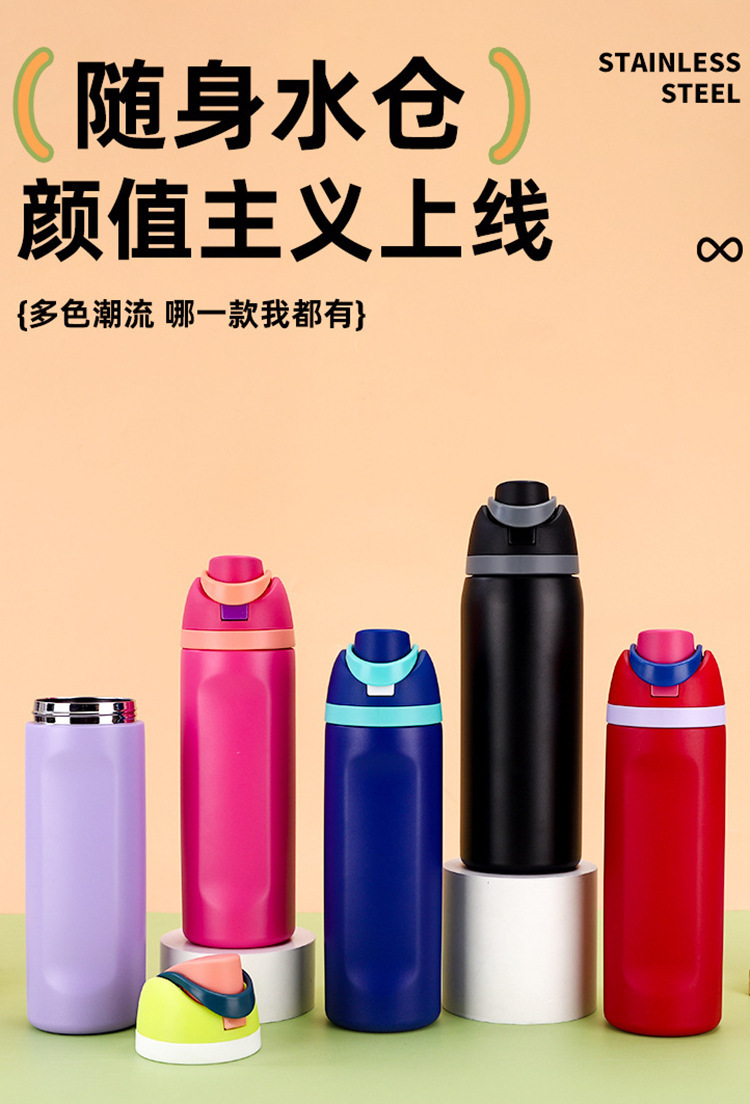 跨境新款水果杯304不锈钢保温杯便携式手提保冷杯便携双饮弹跳杯