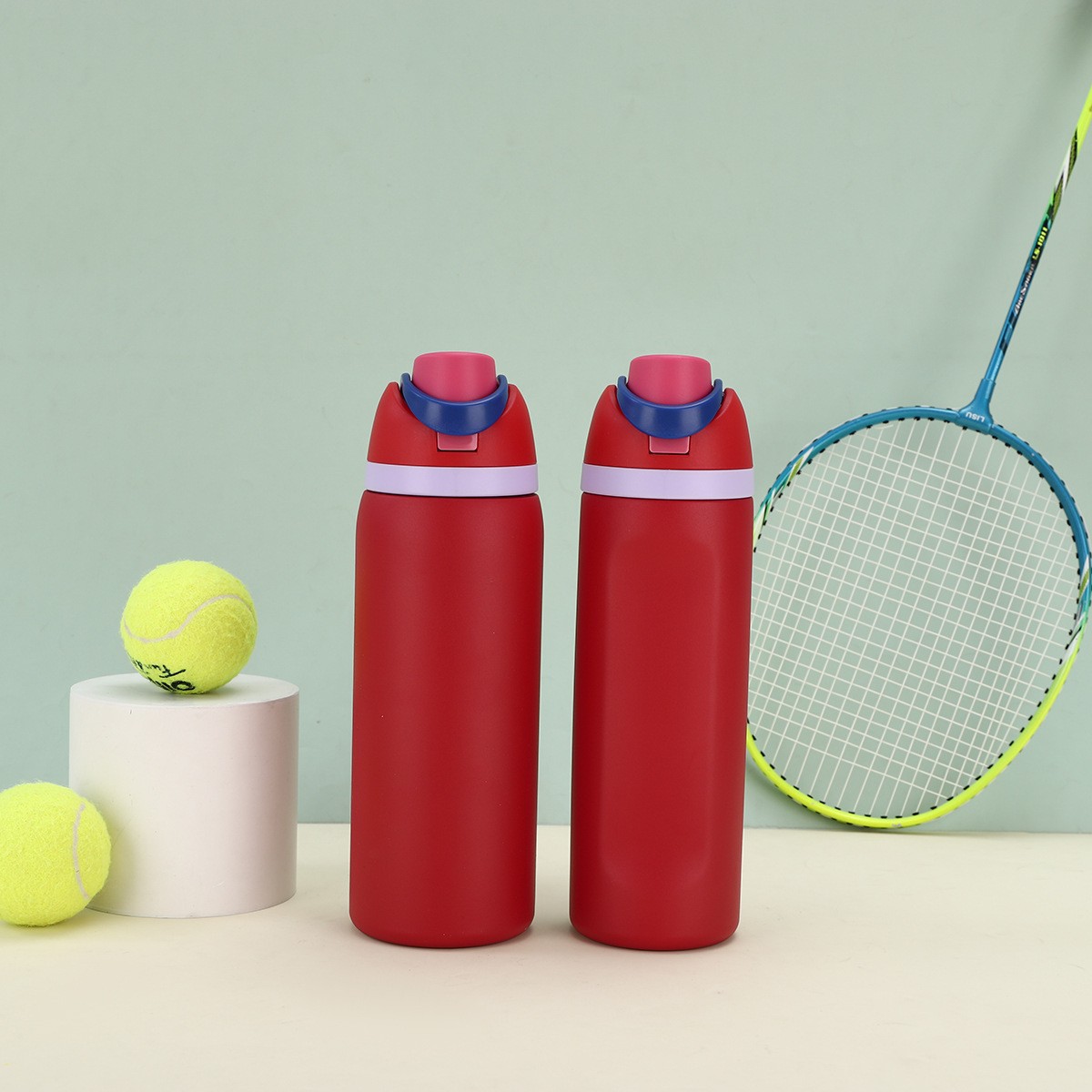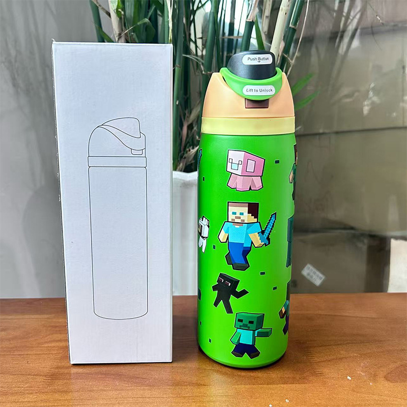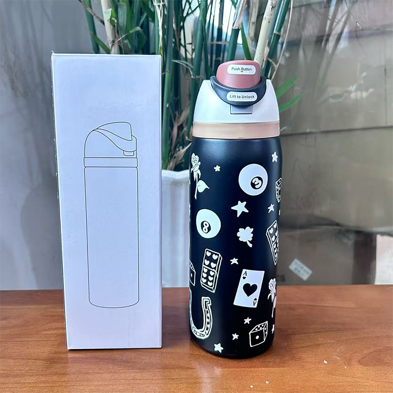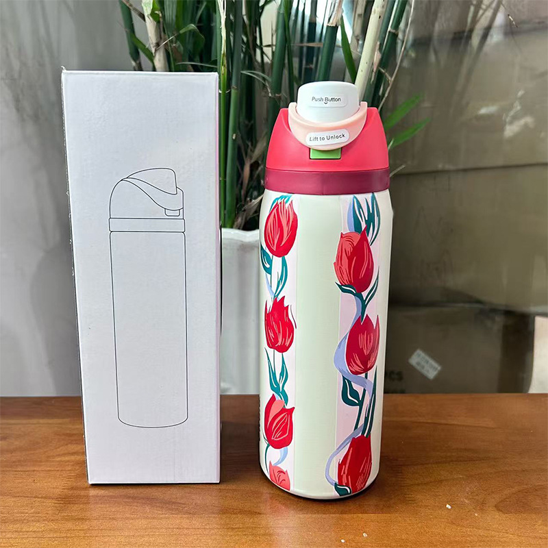 跨境新款水果杯304不锈钢保温杯便携式手提保冷杯便携双饮弹跳杯