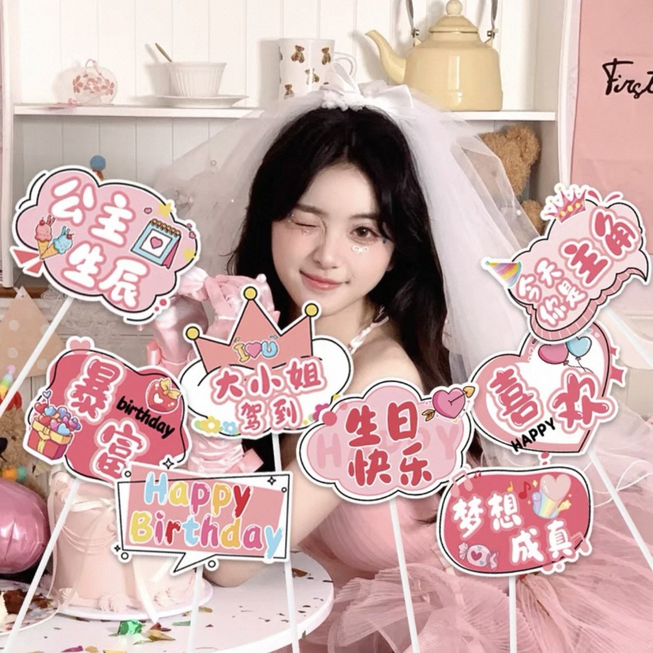 生日快乐手举牌桌牌儿童生日派对桌面装饰摆件手持拍照道具混批发