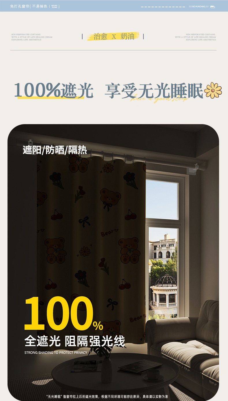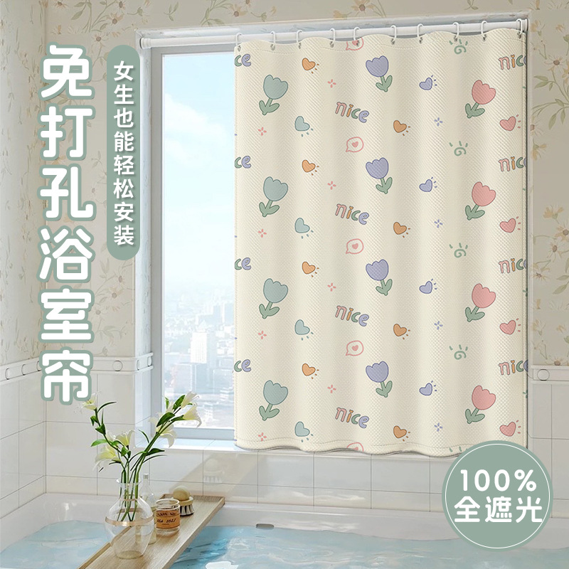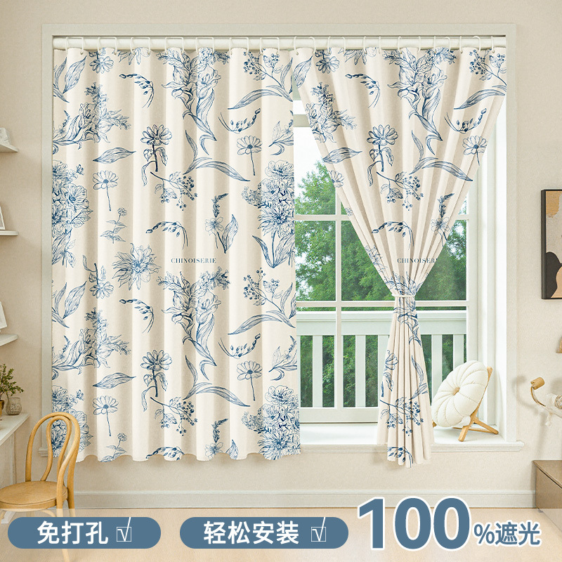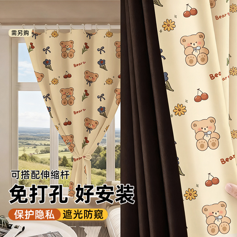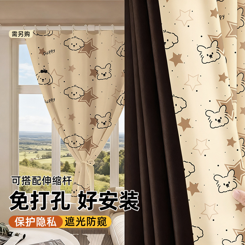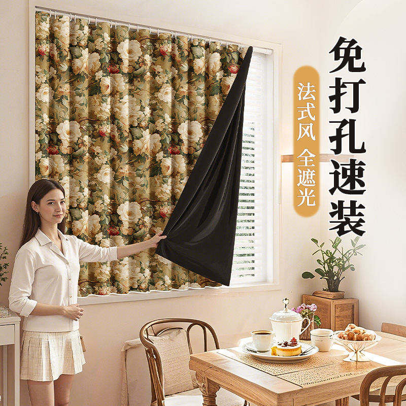 简易遮光窗帘免打孔安装小短窗户遮挡遮阳帘厨房浴室隔断帘包邮