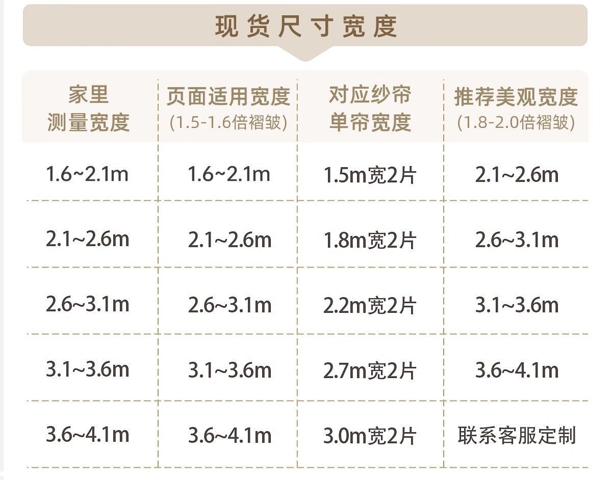 | 适用墙宽3.6-4.1m【帘高2.5m】*双开2片 | USD $28.2 | 497 piece available |