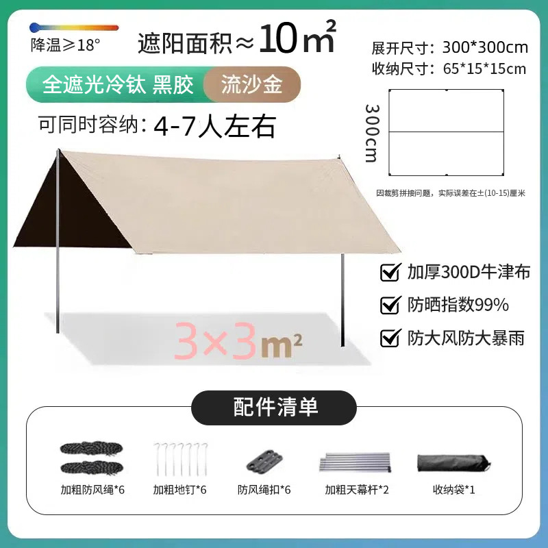 黑胶防晒天幕帐篷户外遮阳棚防风雨露营装备野营折叠桌椅